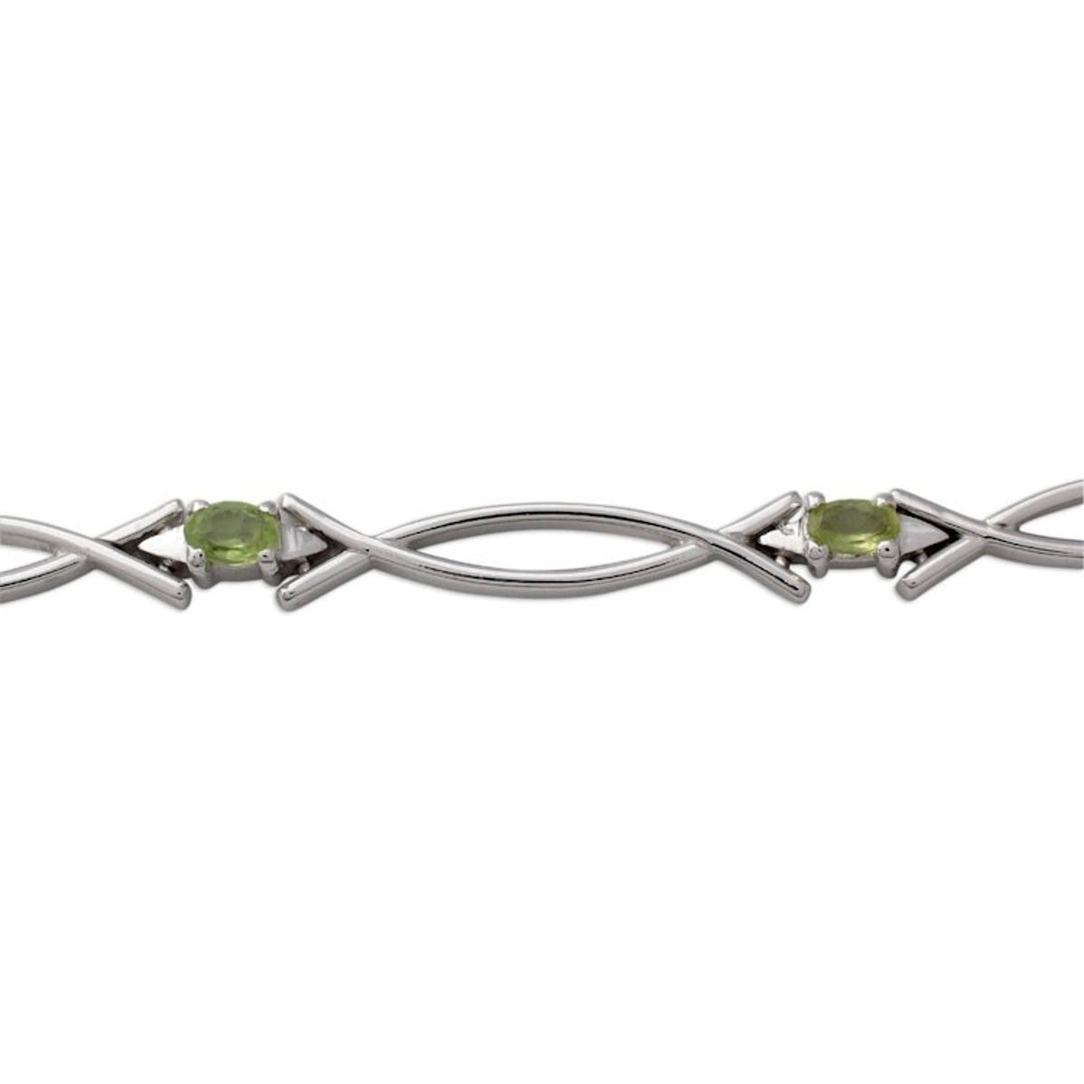 Handcrafted in India from rhodium-plated 925 sterling silver and peridot with a high-polish finish. The bracelet measures 7 inches L x 0.2 inches W and is secured with a lobster claw clasp.