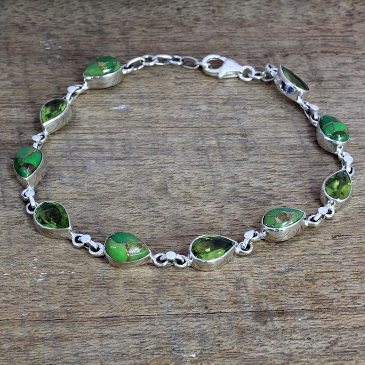 Peridot Composite Turquoise Link Bracelet from India 'Sunny Drops in Green'