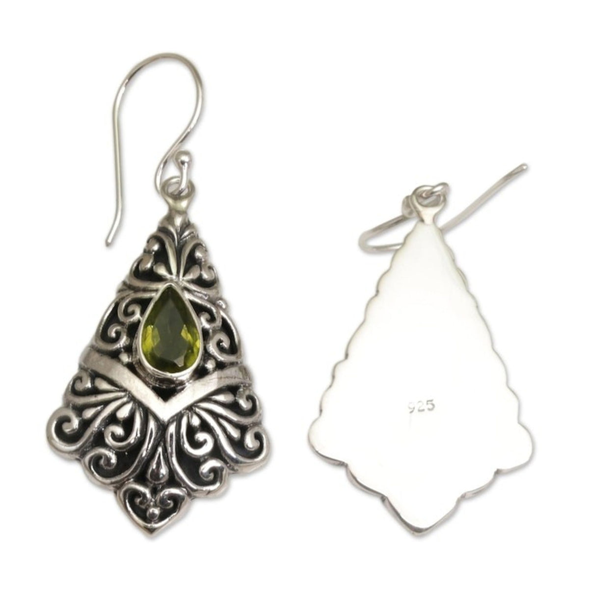 Handcrafted in Indonesia from 925 sterling silver and peridot with a combination finish. The earrings feature hook earrings and measure 1.7 inches L x 0.7 inches W x 0.2 inches D.