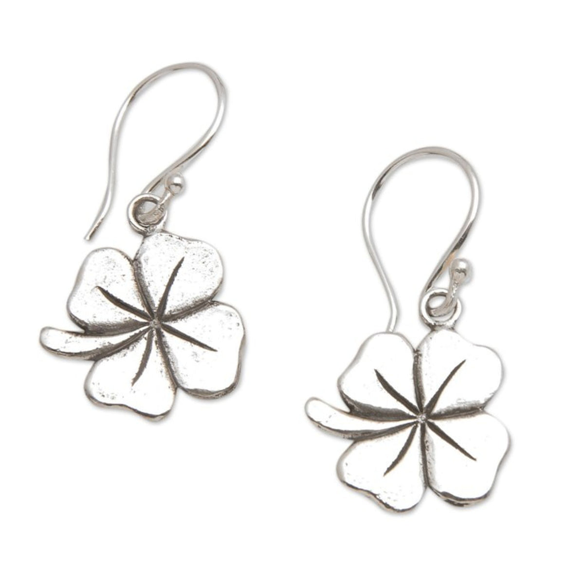 Polished Clover-Shaped Sterling Silver Dangle Earrings 'Prime Clover'