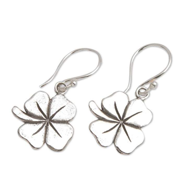 Polished Clover-Shaped Sterling Silver Dangle Earrings 'Prime Clover' These 'Prime Clover' dangle earrings by Balinese artisan Griya Suarningsih are perfect for adding a charming touch to any ensemble. The sterling silver earrings boast an exquisite polished finish that enriches their sweet grace and leafy shapes. Let your style be both graceful and lucky with these clovers from the Balinese Islands.