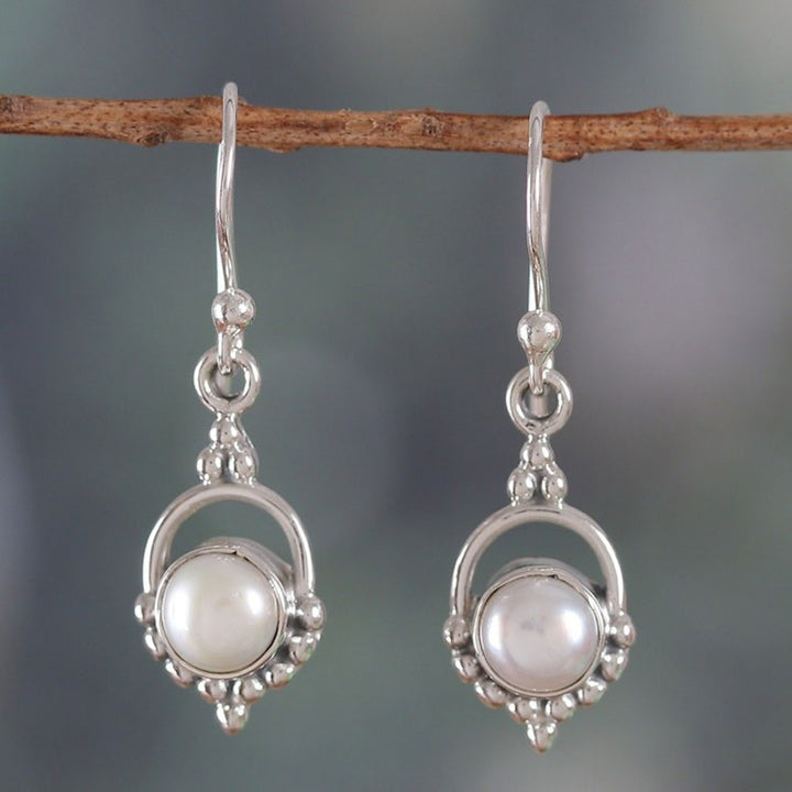 Polished Cream Cultured Pearl Dangle Earrings from India 'Pure Allure'