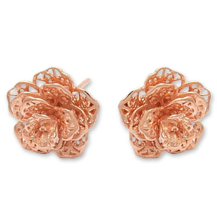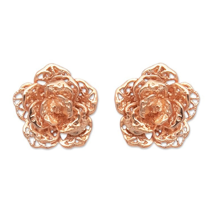 Polished Floral 18k Rose Gold-Plated Button Earrings 'Primaveral Rose'