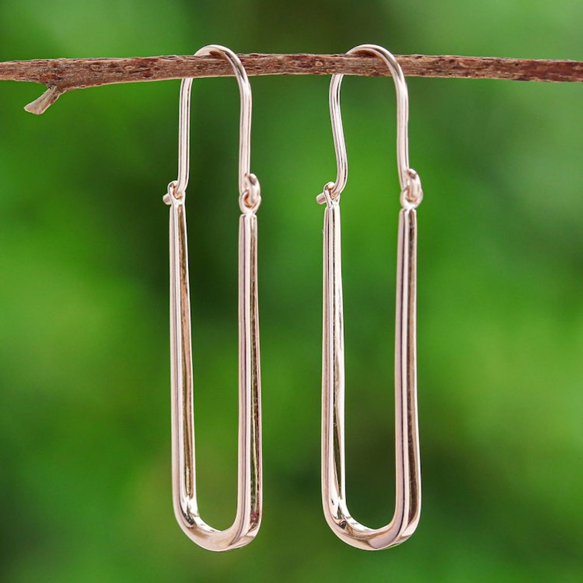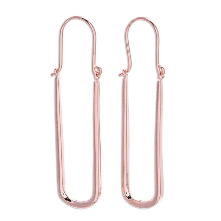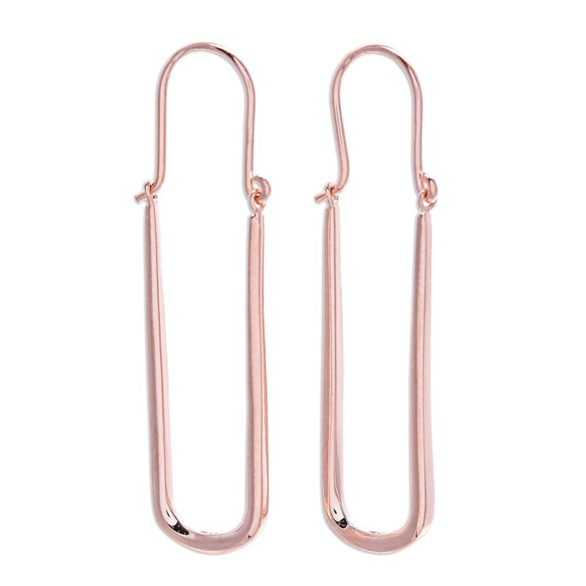 Handcrafted in Thailand from 18k rose gold-plated 925 sterling silver with a high-polish finish. The earrings feature saddleback/sea catch earrings and measure 1.4 inches L x 0.4 inches W.