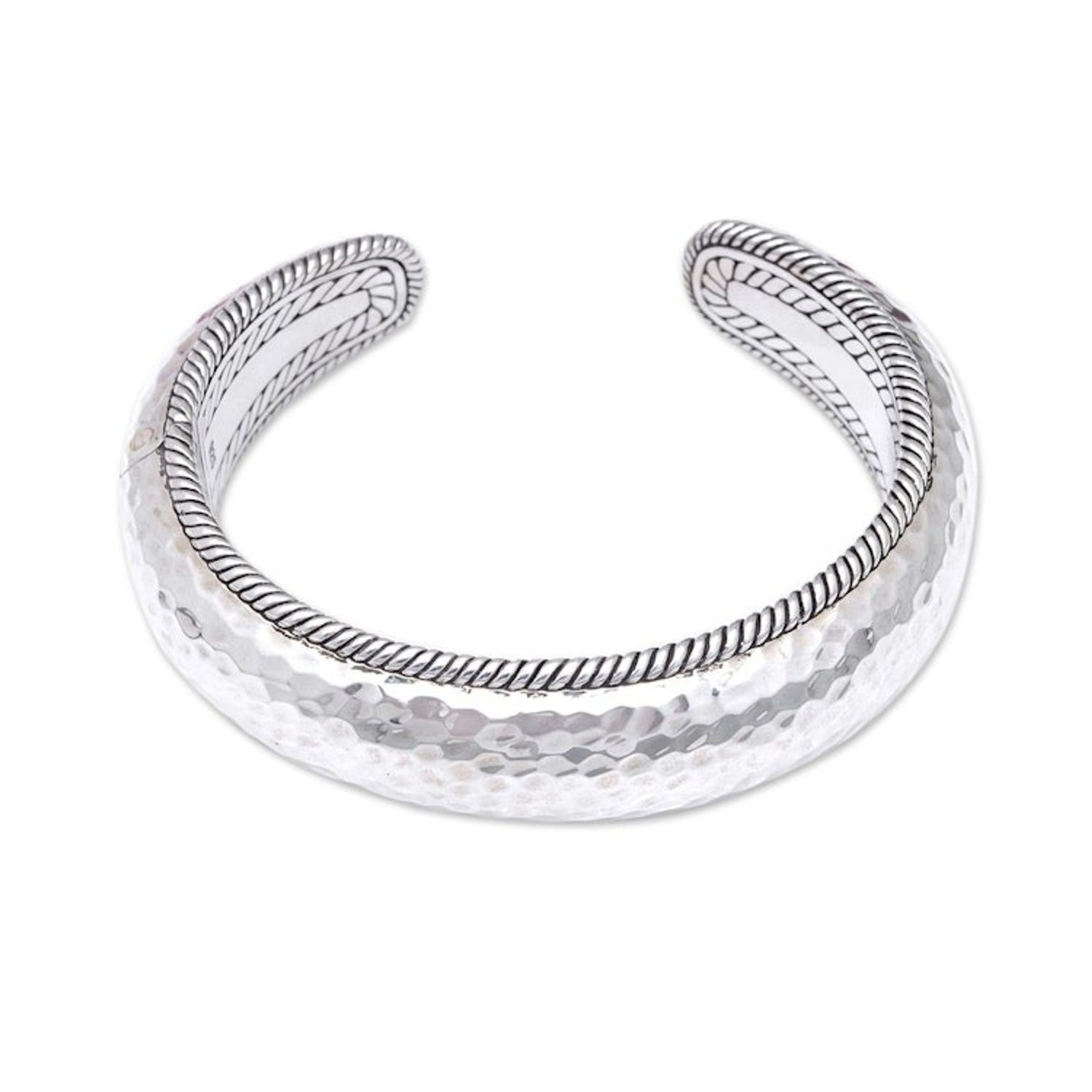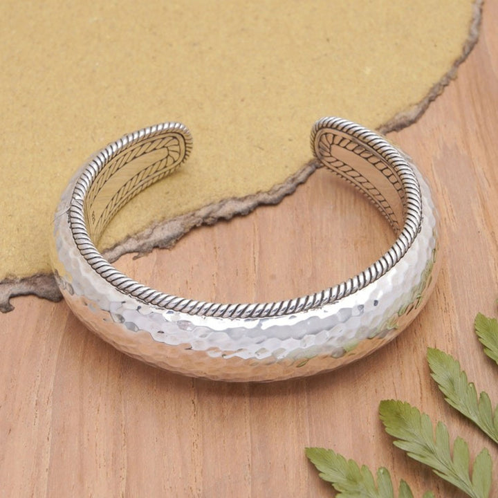 Polished Sterling Silver Cuff Bracelet Crafted in Bali 'Ambitions' Balinese artisan Nyoman Ariawan puts his expertise into practice to create this sturdy and fascinating sterling silver cuff bracelet. The accessory features traditional Balinese motifs on the interior and hammered details at the front, with a high-polish finish that adds a glamorous touch.