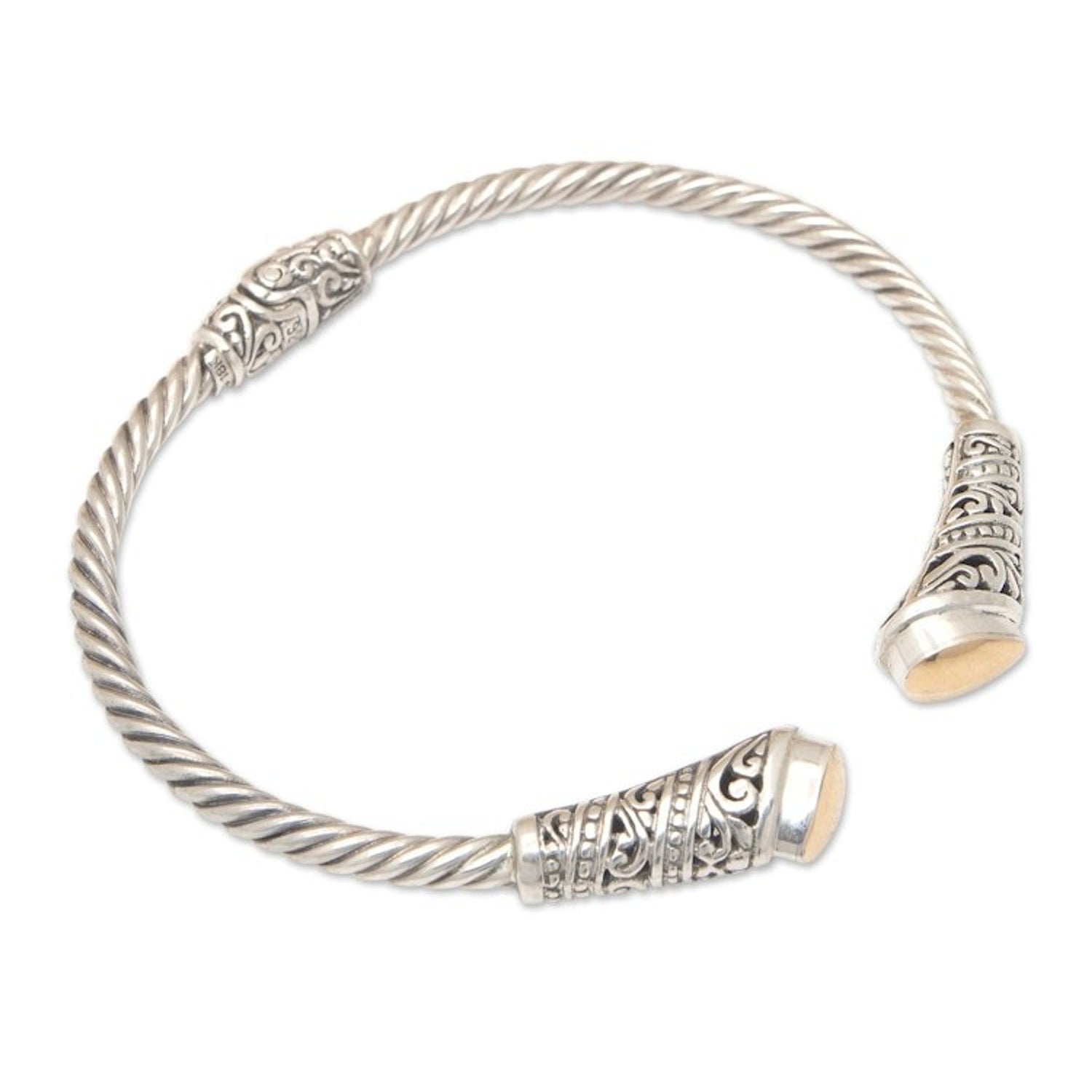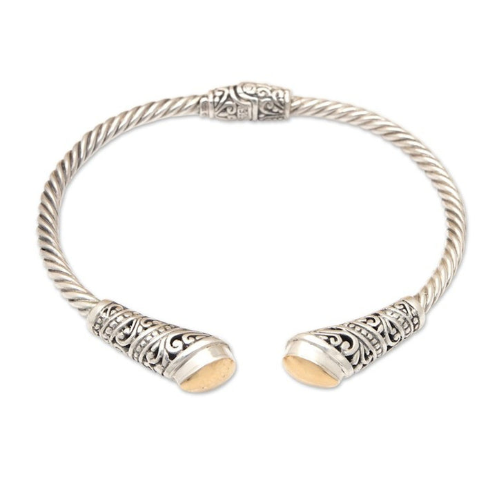 Polished Sterling Silver Cuff Bracelet with Gold Accents 'Gianyar's Soul'