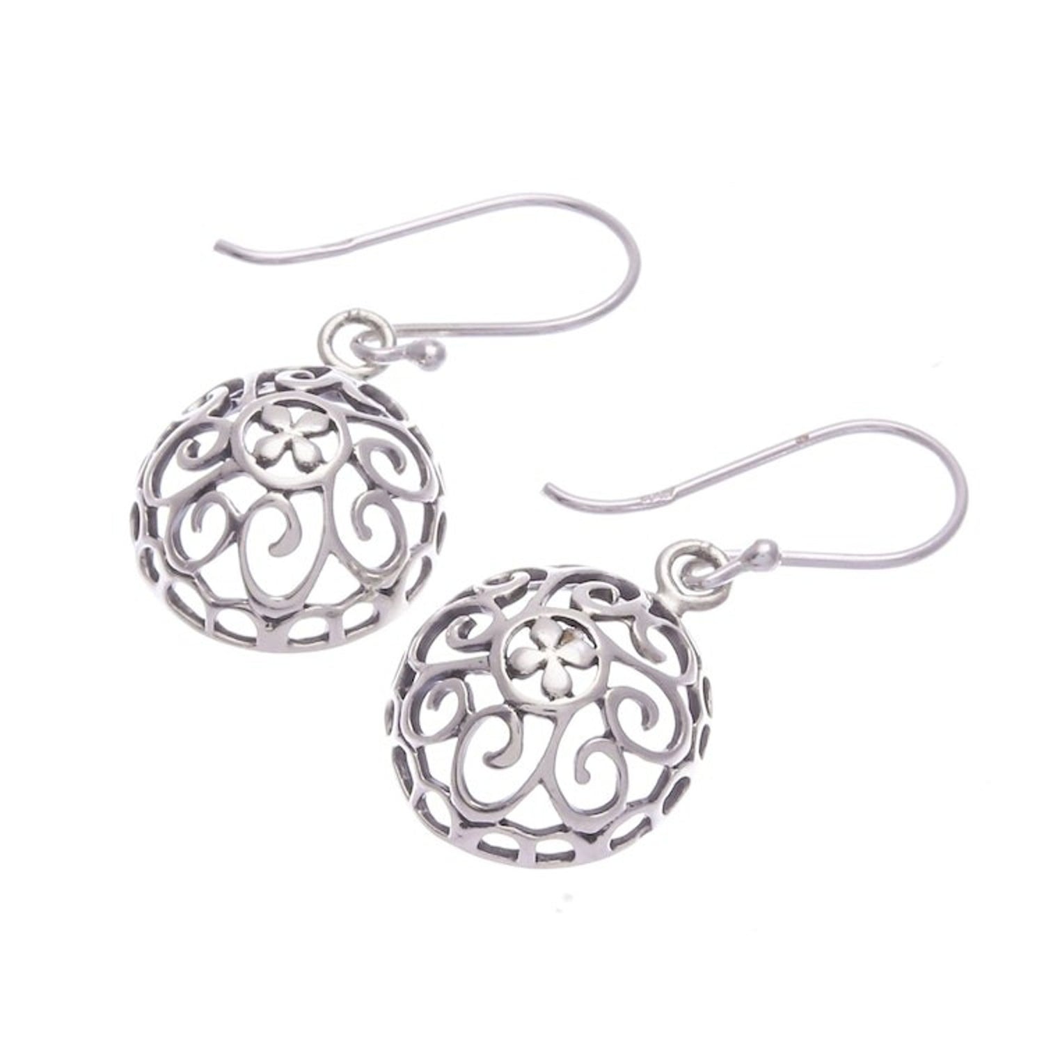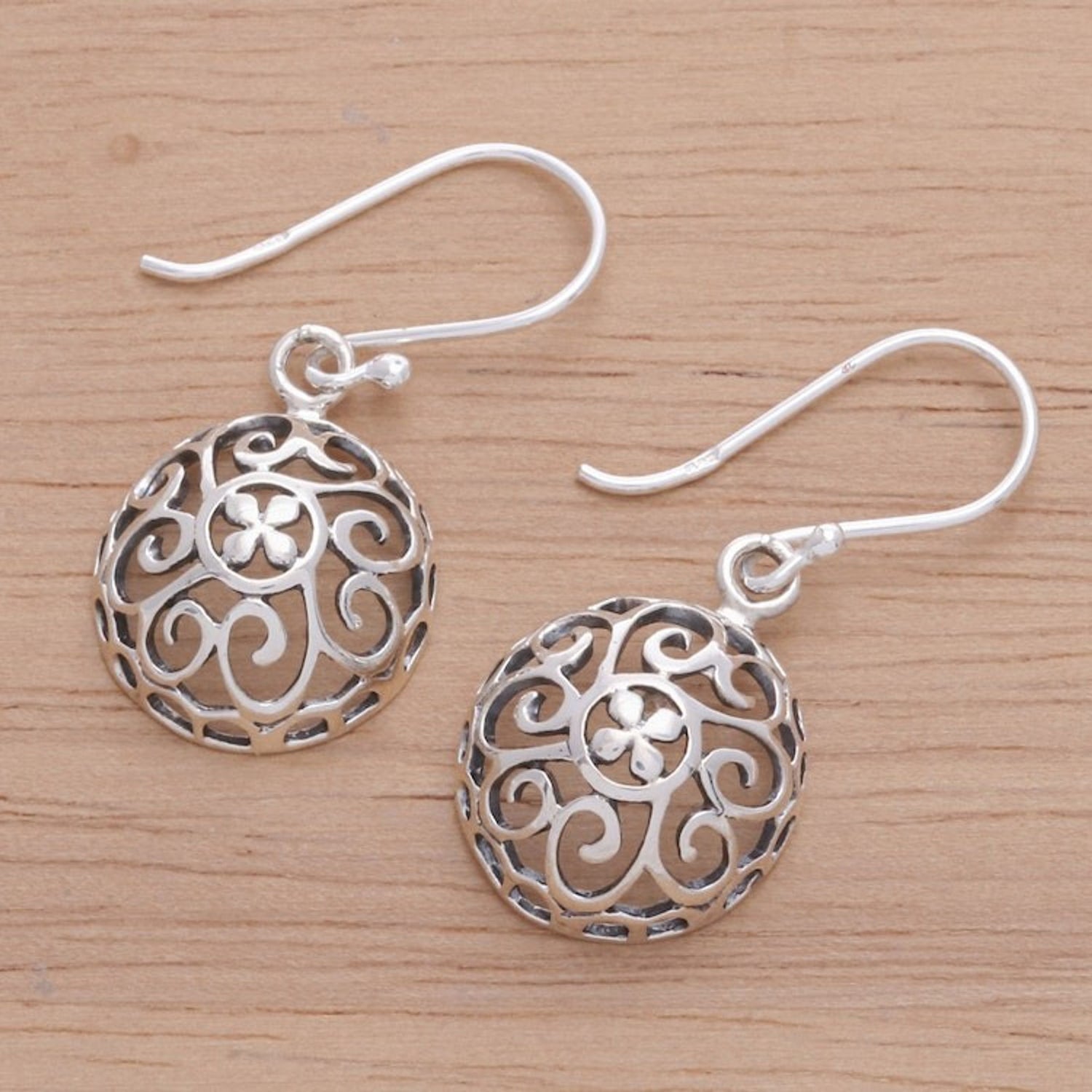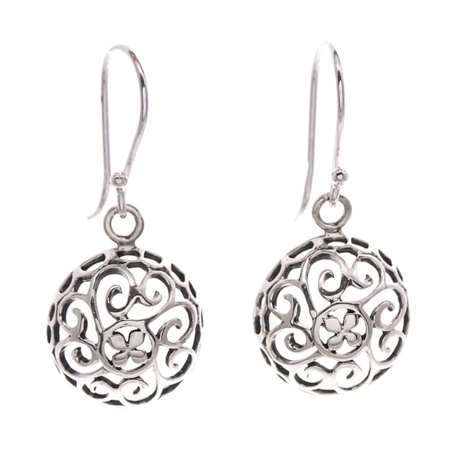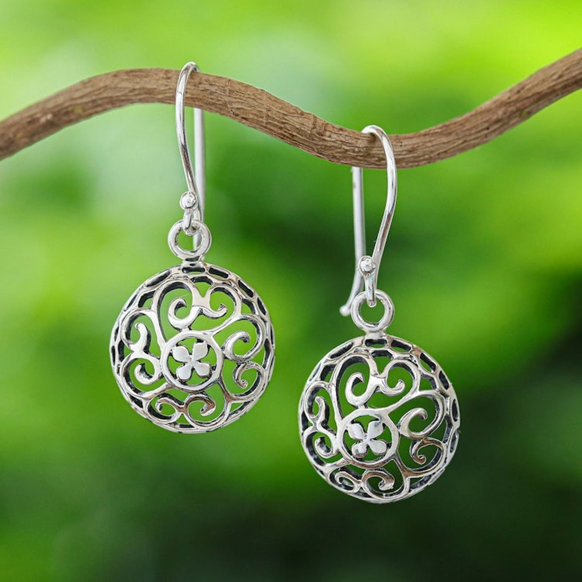 Polished Sterling Silver Dangle Earrings with Floral Design 'Ethereal Bouquets' These 'Ethereal Bouquets' dangle earrings by Thai artisan Pichaya are a dazzling accessory with magical floral designs. The sterling silver earrings are made with a high-polish finish for an elegant look.