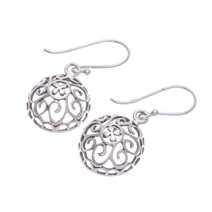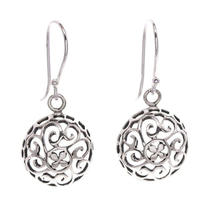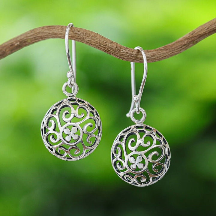 Polished Sterling Silver Dangle Earrings with Floral Design 'Ethereal Bouquets'
