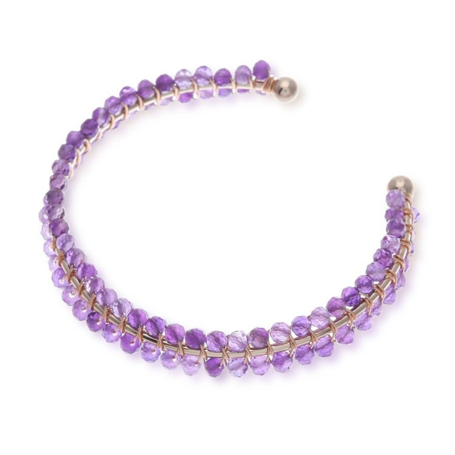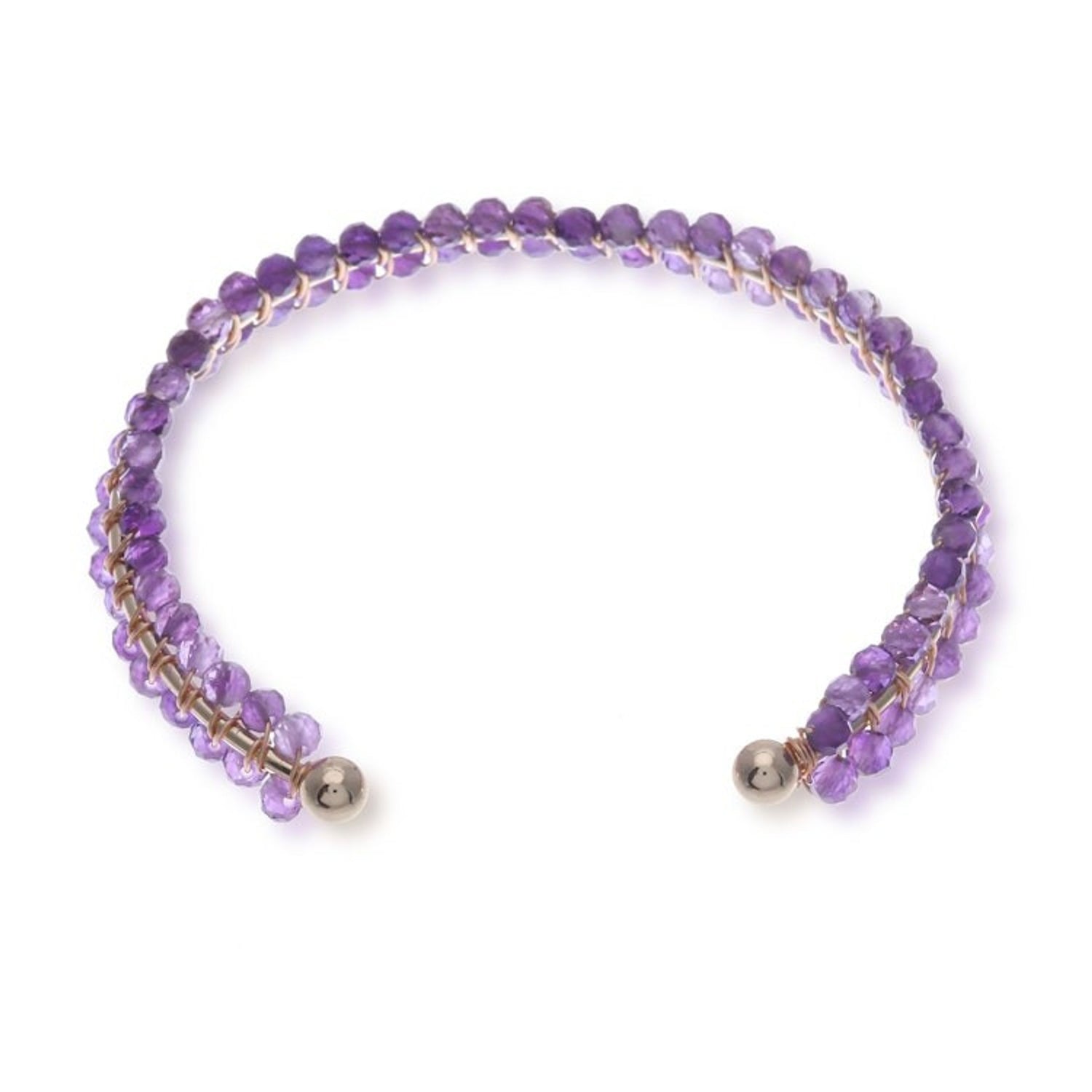 Handcrafted in Thailand from amethyst, copper wire, and 14k gold-plated brass with a high-polish finish. The bracelet measures 5.5 inches L (end to end) x 0.3 inches W.