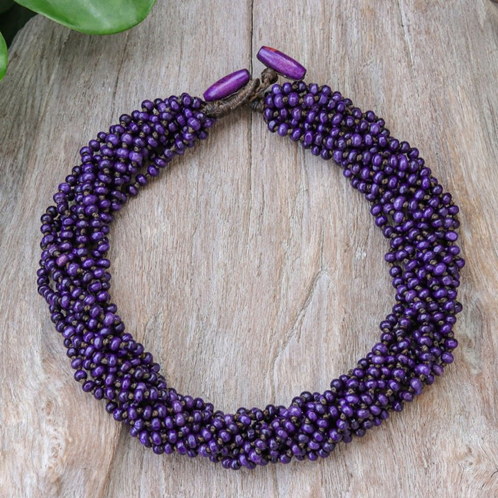 Purple Torsade Necklace Wood Beaded Jewelry 'Nan Belle'