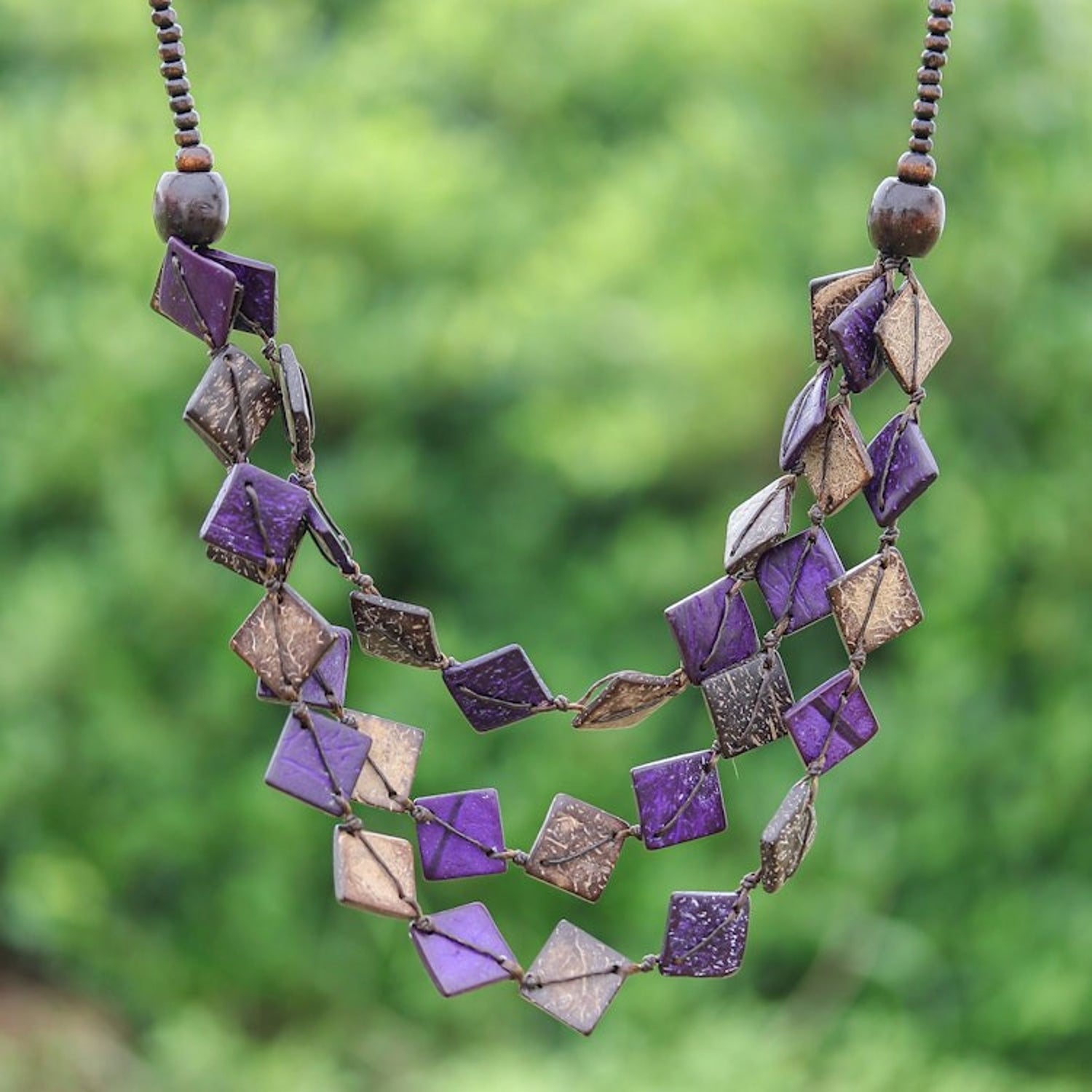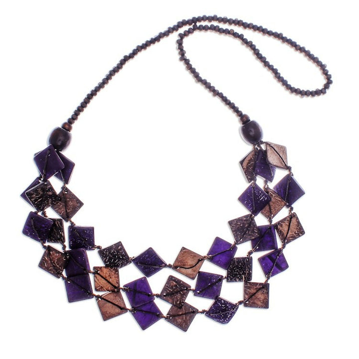 Purple Wood and Coconut Shell Beaded Strand Necklace 'Enchanted Diamonds'