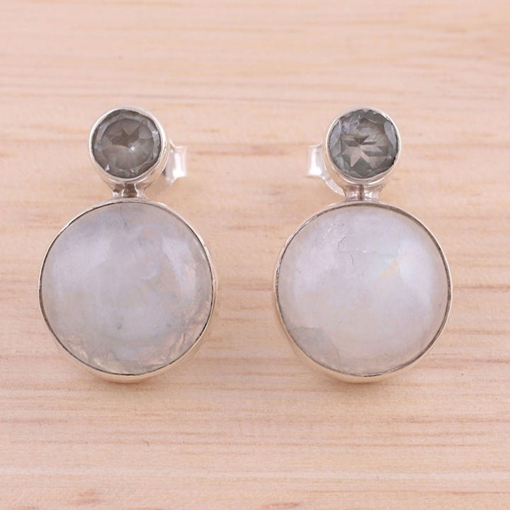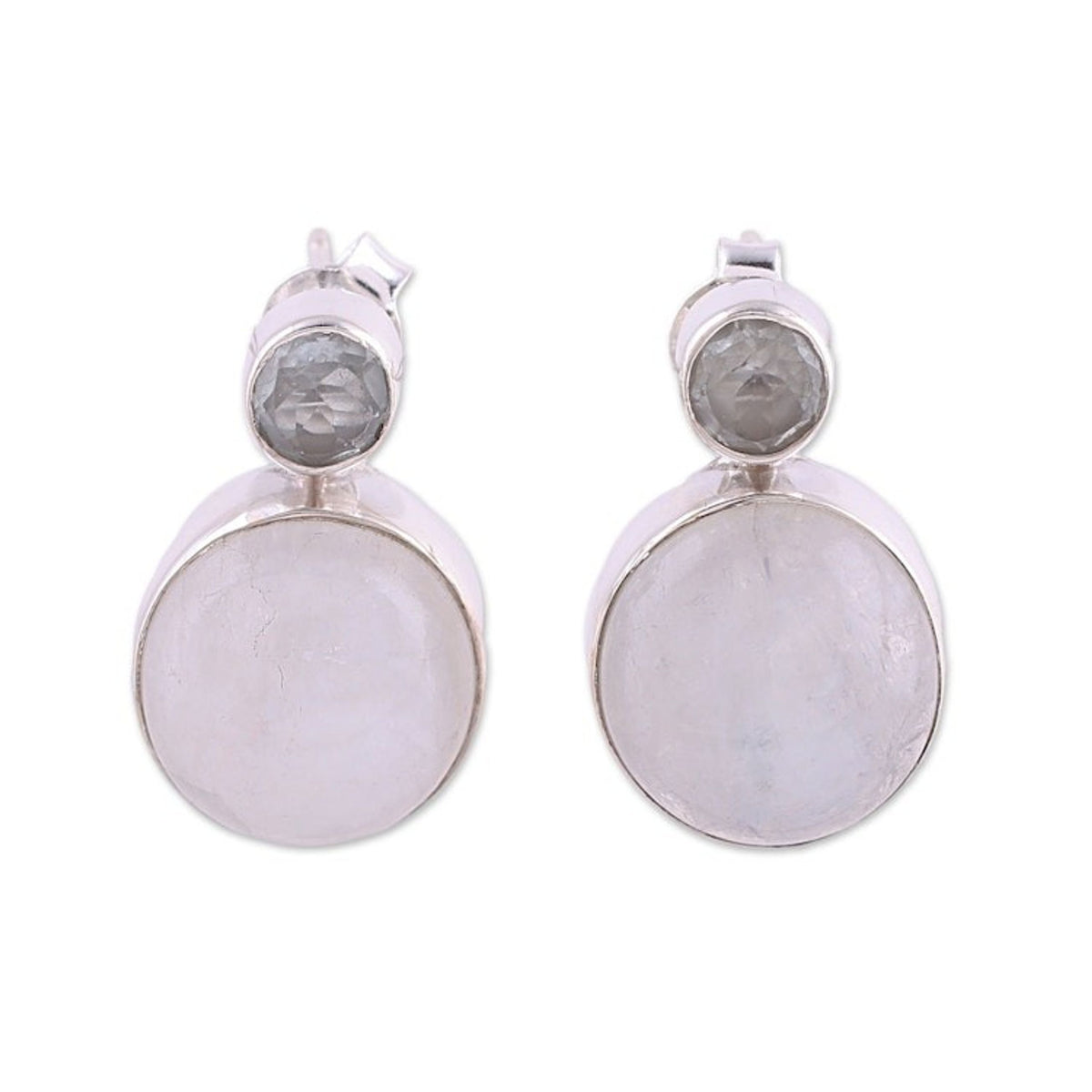 Rainbow Moonstone and Blue Topaz Drop Earrings from India 'Delhi Diva'