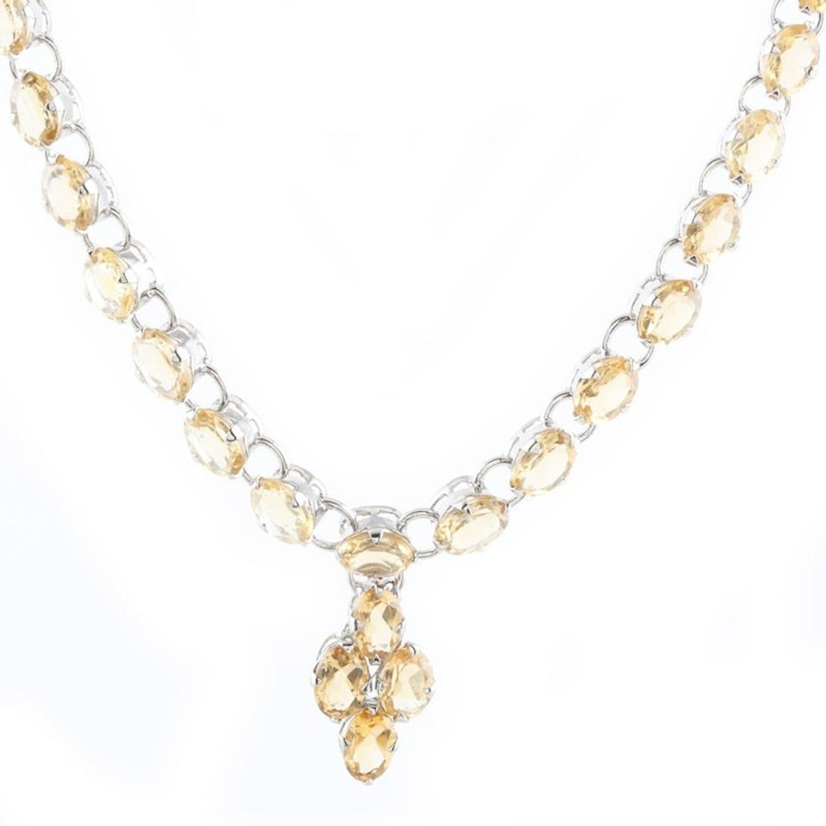 Handcrafted from rhodium-plated .925 sterling silver and citrine, this necklace measures 18.5 inches L. The pendant is 7.8 inches L x 0.9 inches W x 0.2 inches D and has a high-polish finish and a lobster claw clasp.