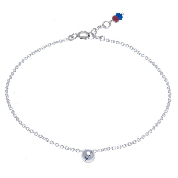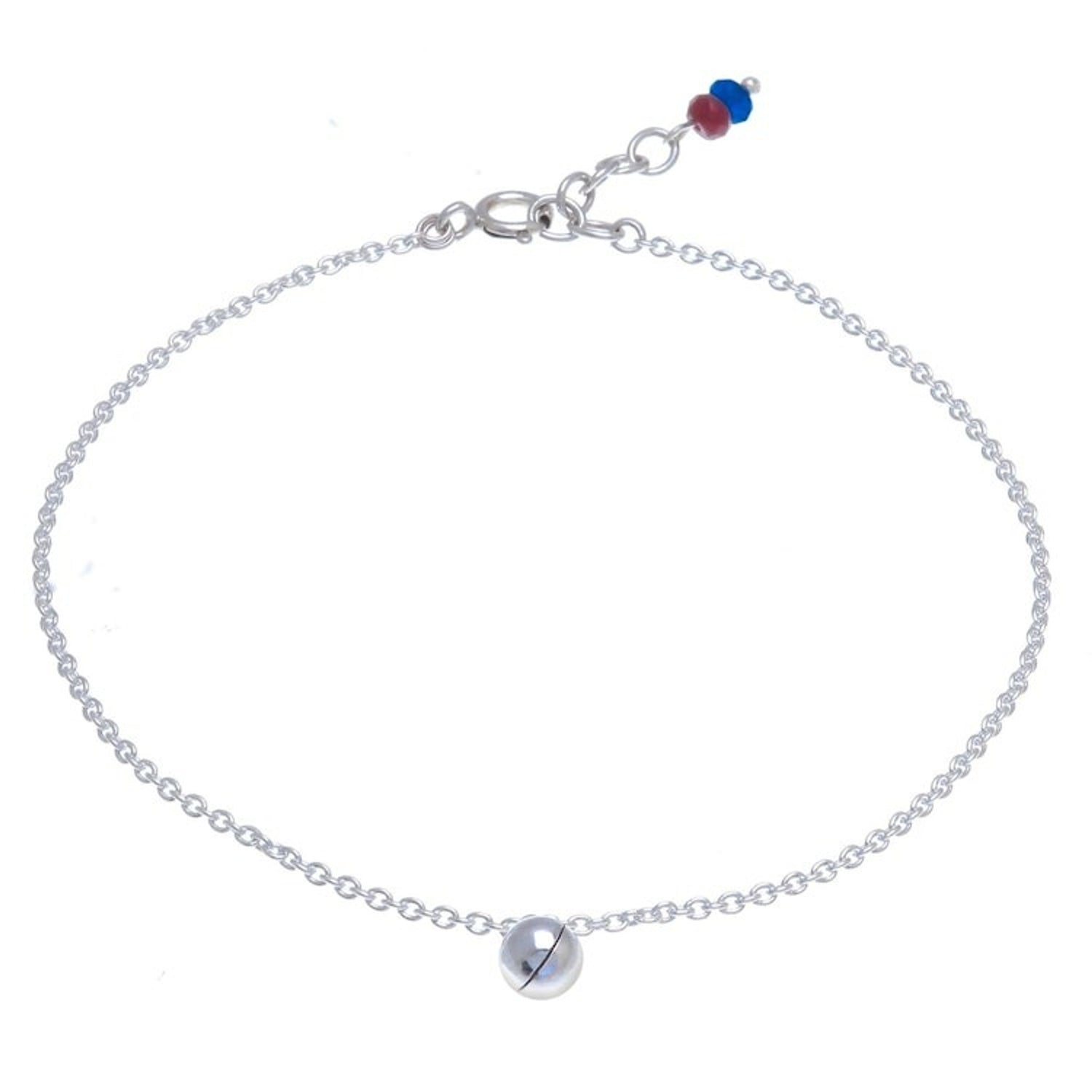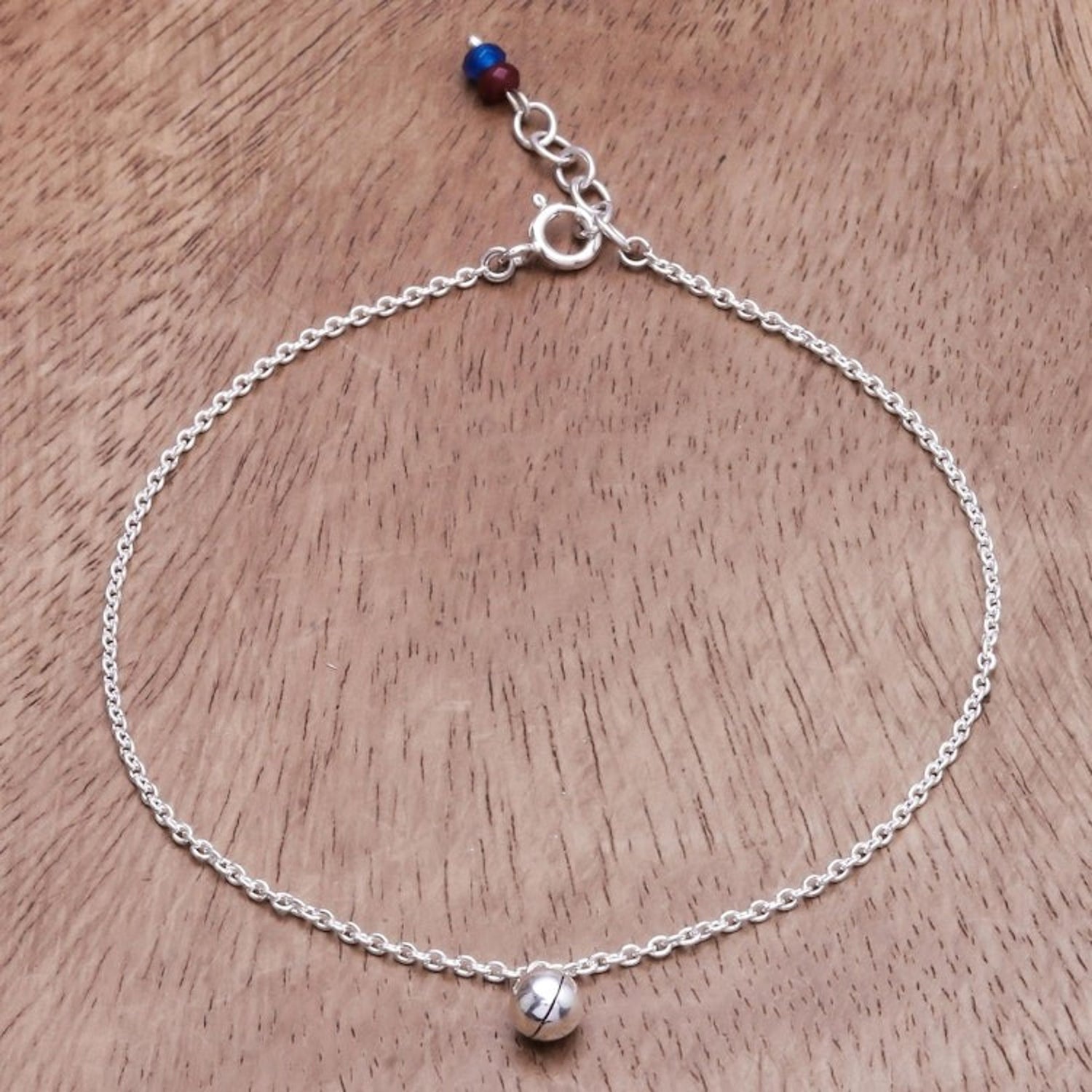 This Ringing Bell Sterling Silver and Quartz Anklet from Thailand 'Nice Ring' by Independent Artisans is a beautiful anklet that encircles the ankle with a sterling silver cable chain. Crafted by Tipa, the anklet is centered by a sterling ringing bell charm that makes a quiet ringing sound. Red and blue quartz beads adorn the extender chain, adding a touch of color and elegance. This piece is a beautiful blend of Thai heritage and worldly influences.