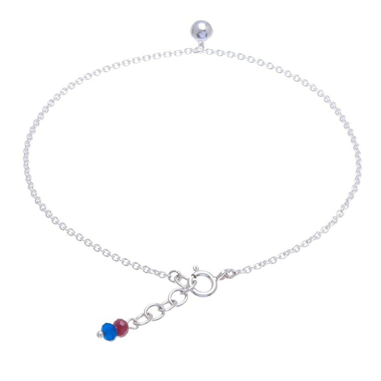 Handcrafted from .925 sterling silver and dyed quartz, this anklet measures 9.8 inches L with a 0.8-inch L extender. It has a high-polish finish and a spring ring clasp.