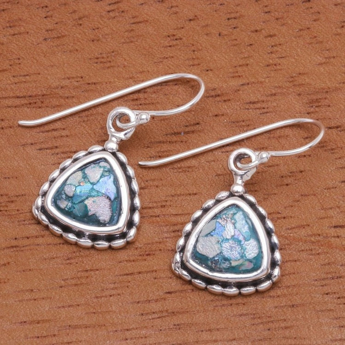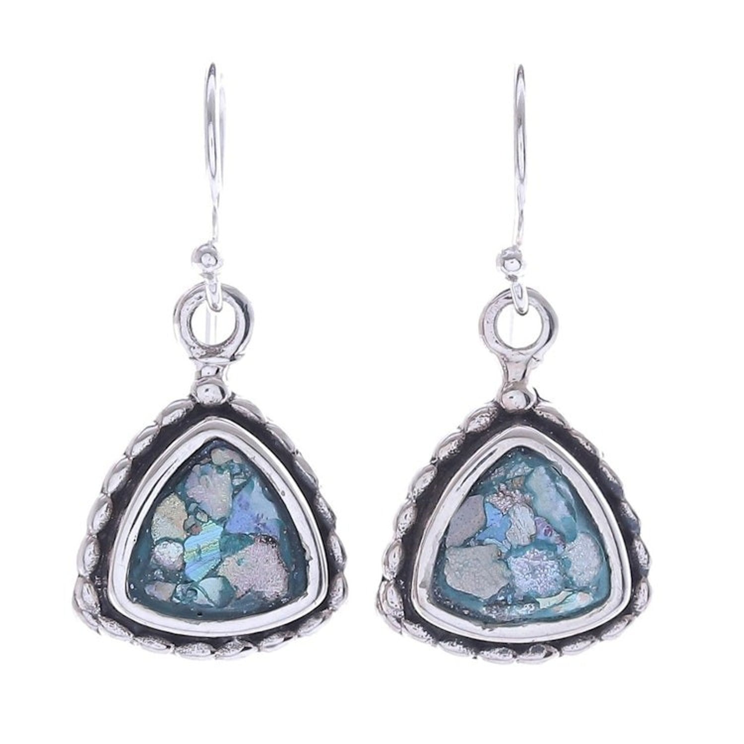 Handcrafted from .925 sterling silver and Roman glass, these hook earrings measure 1.1 inches L x 0.5 inches W x 0.2 inches D and have a combination finish.