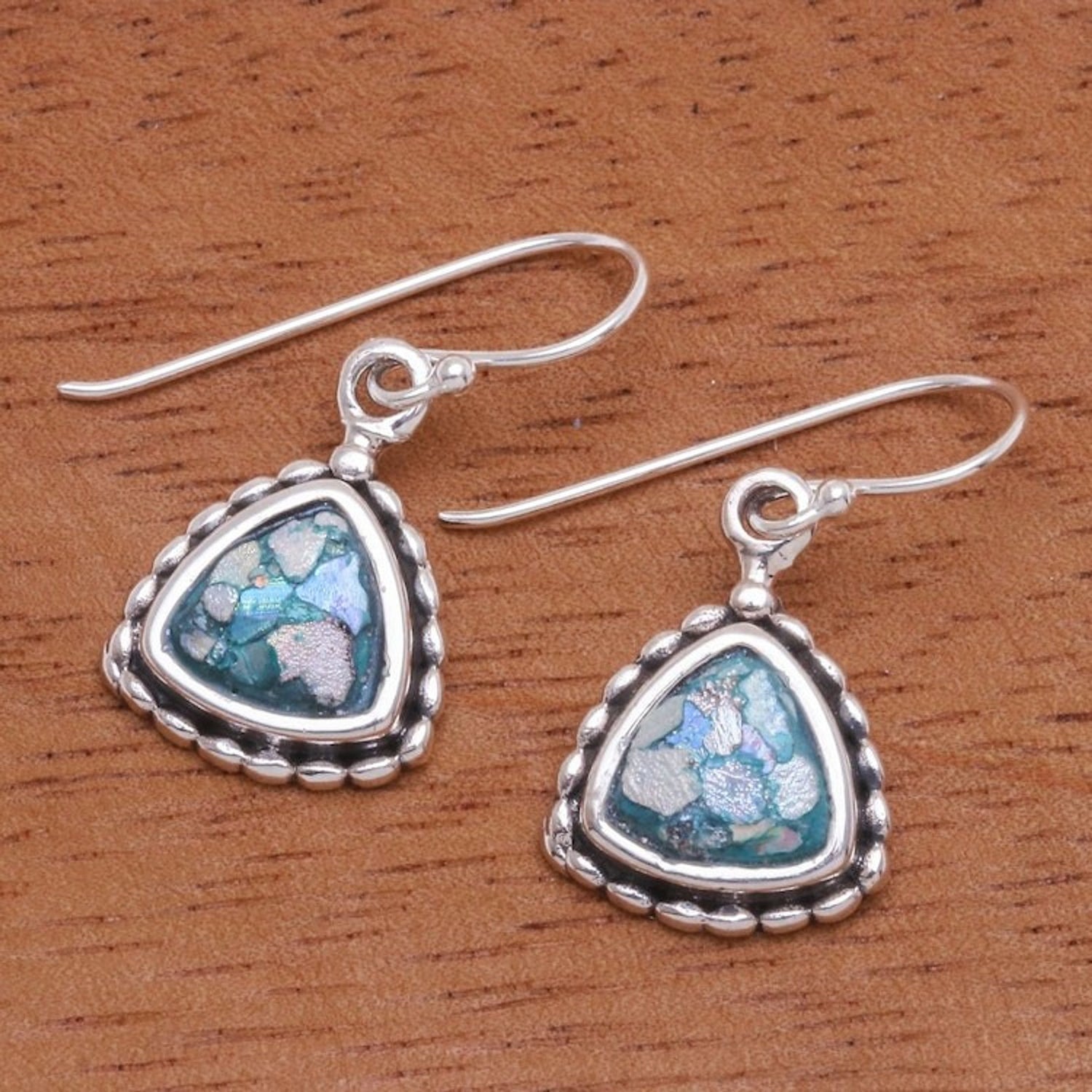 These Roman Glass and Sterling Silver Dangle Earrings 'Fresh Snow' by Independent Artisans allow you to wear a piece of history on your ears. Michael Krainer crafts these earrings from ancient Roman glass recovered from archaeological sites. The sterling silver accents complement the iridescent glass perfectly, creating a beautiful and unique accessory. These earrings are a testament to the artisan's artistry and soul, and they are destined to be cherished for years to come.