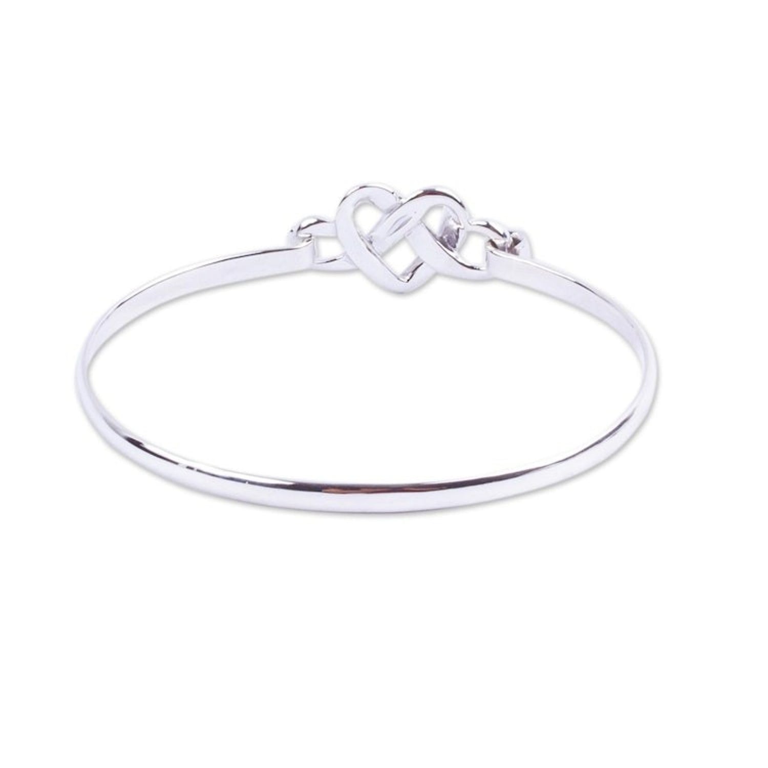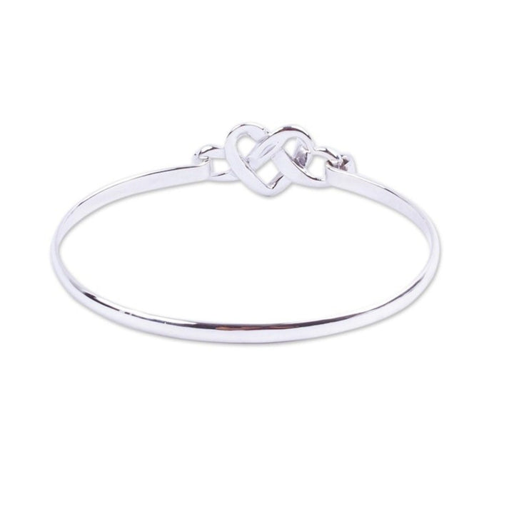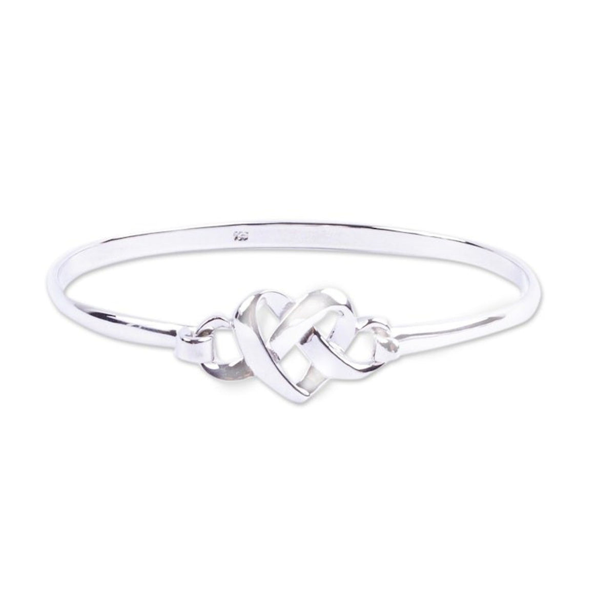 This Romantic Sterling Silver Bangle Bracelet 'Taxco Love Knot' by Independent Artisans is a romantic bangle bracelet with a unique design. The original creation of father and son duo Graeme and Philip Watson, the slender bangle features a heart-shaped knot. It is crafted from sterling silver from Mexico's famed Taxco mines, and it is a beautiful reflection of their resilience and dedication to their craft.