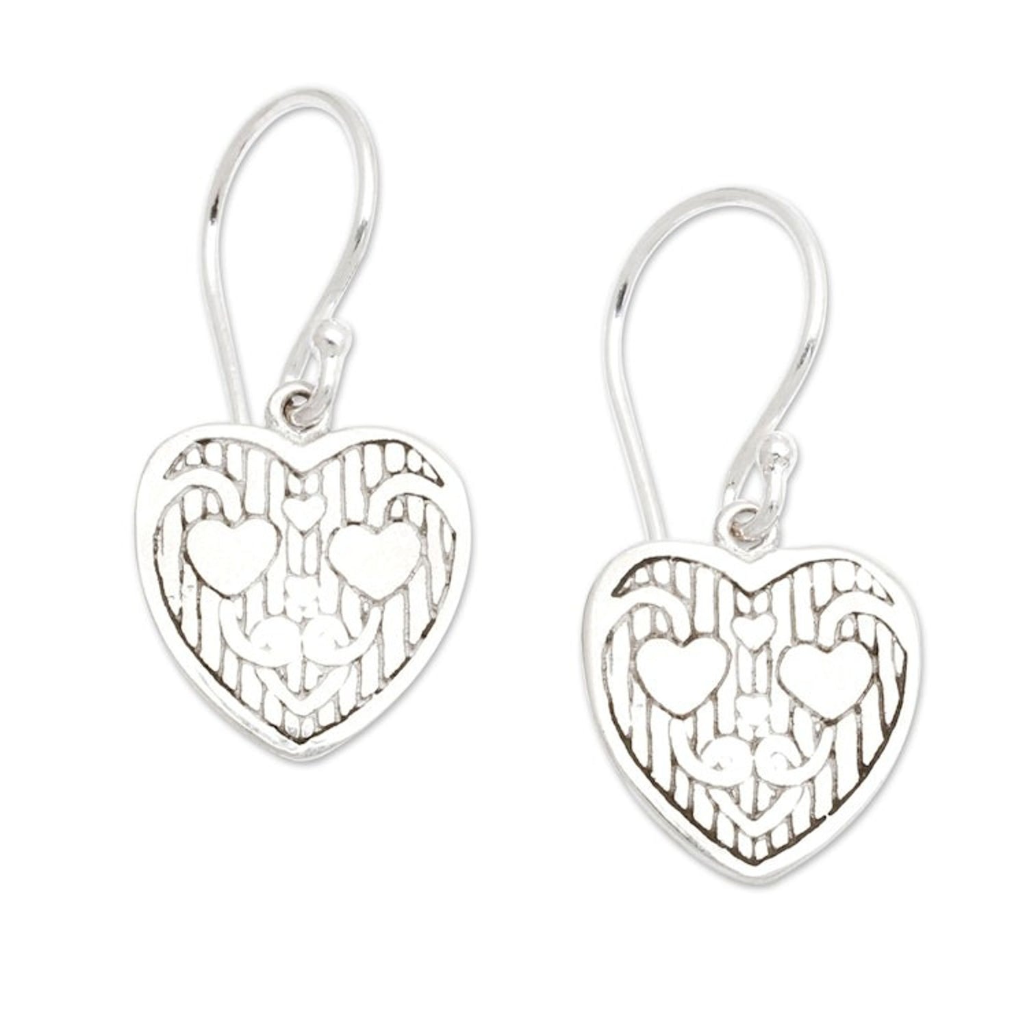 Romantic Sterling Silver Heart Dangle Earrings from Bali 'Loving Soul'