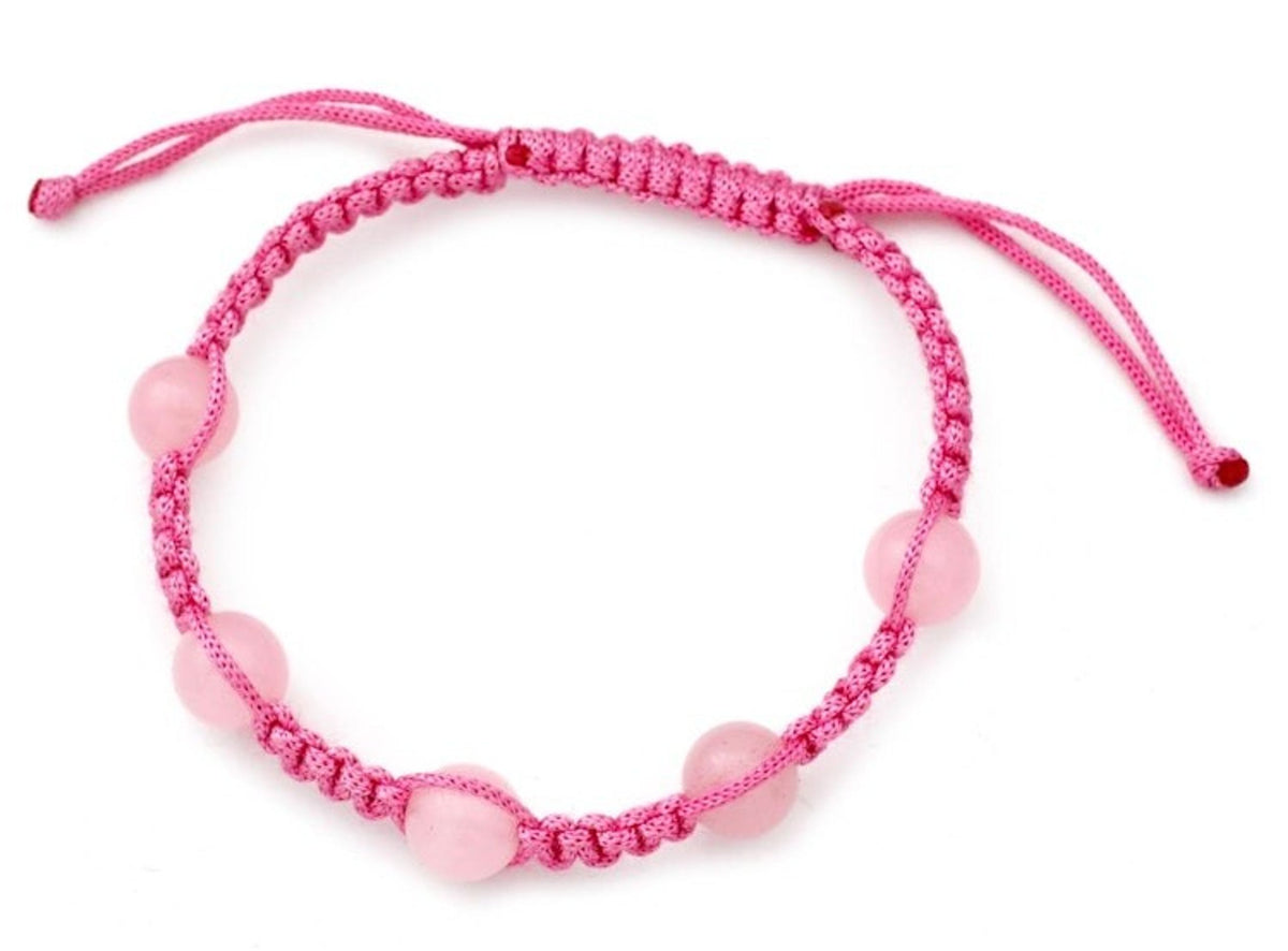Handcrafted from rose quartz and nylon cords, this bracelet measures 6 to 8.8 inches L and is adjustable with a sliding knot.