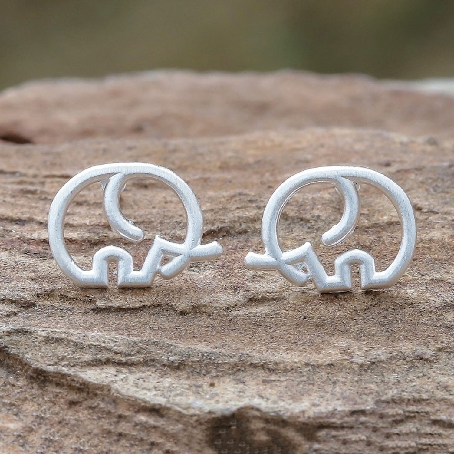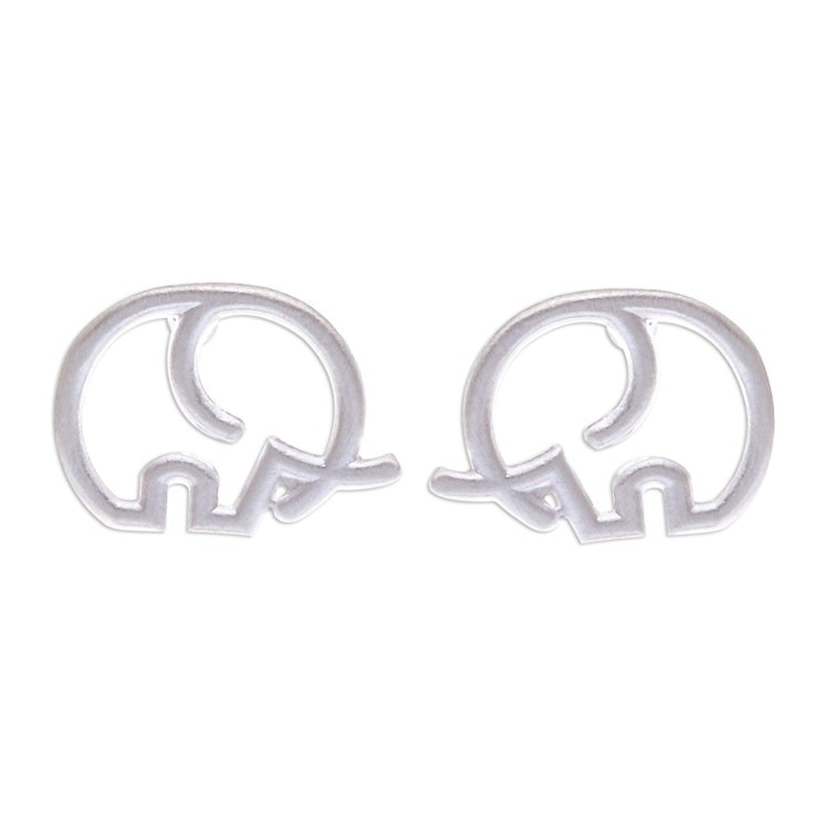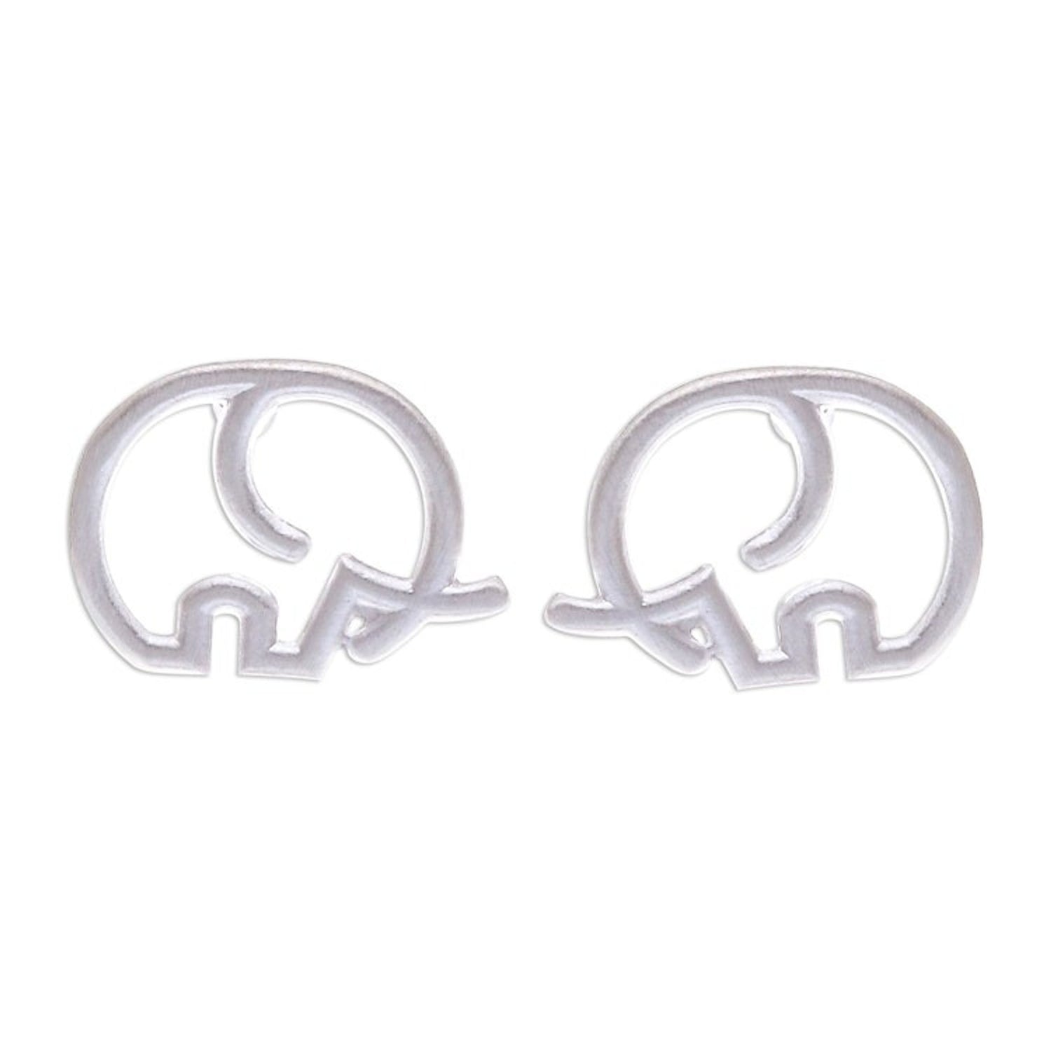These Round Sterling Silver Elephant Stud Earrings from Thailand 'Cute Tusks' by Independent Artisans are a pair of stud earrings with a cute and charming design. Designed by Jantana, two cute little elephants form this pair of earrings, showing off their tusks. The accessory is given a brushed-satin finish that gleams in the light, reflecting the artist's commitment to community.