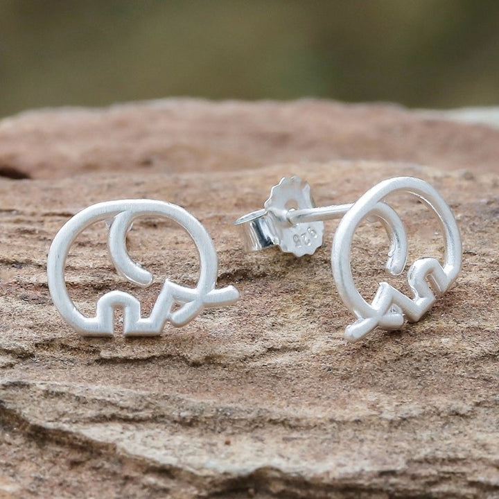 Round Sterling Silver Elephant Stud Earrings from Thailand 'Cute Tusks'