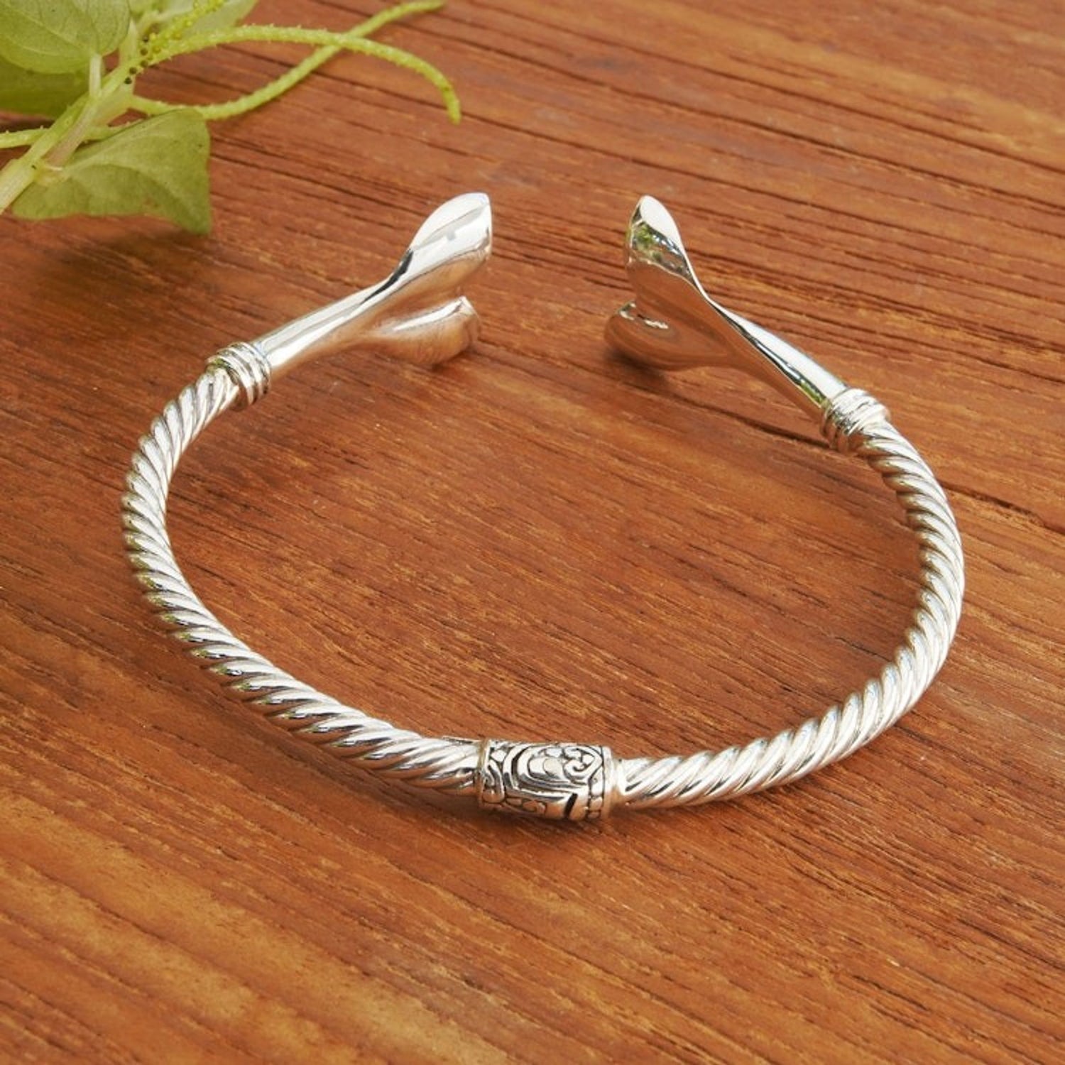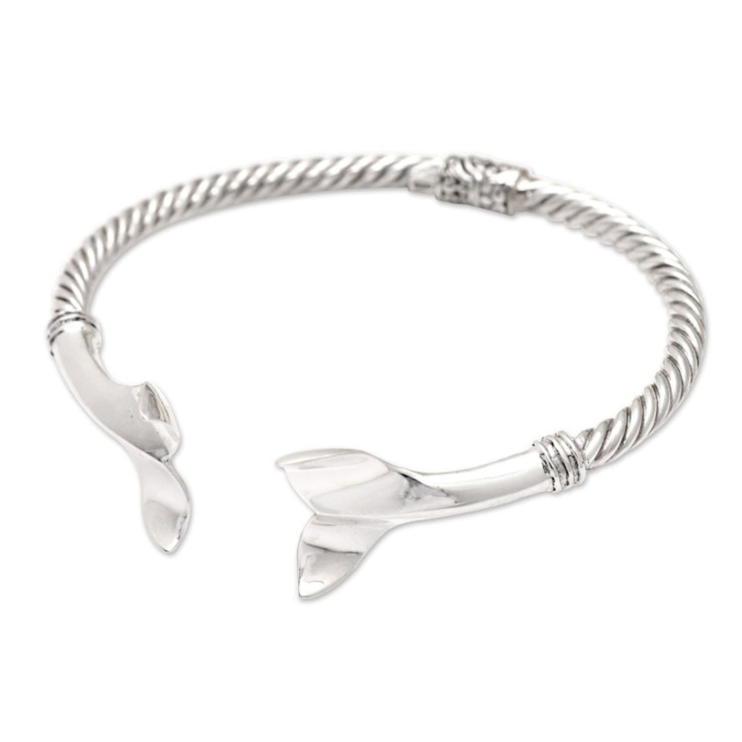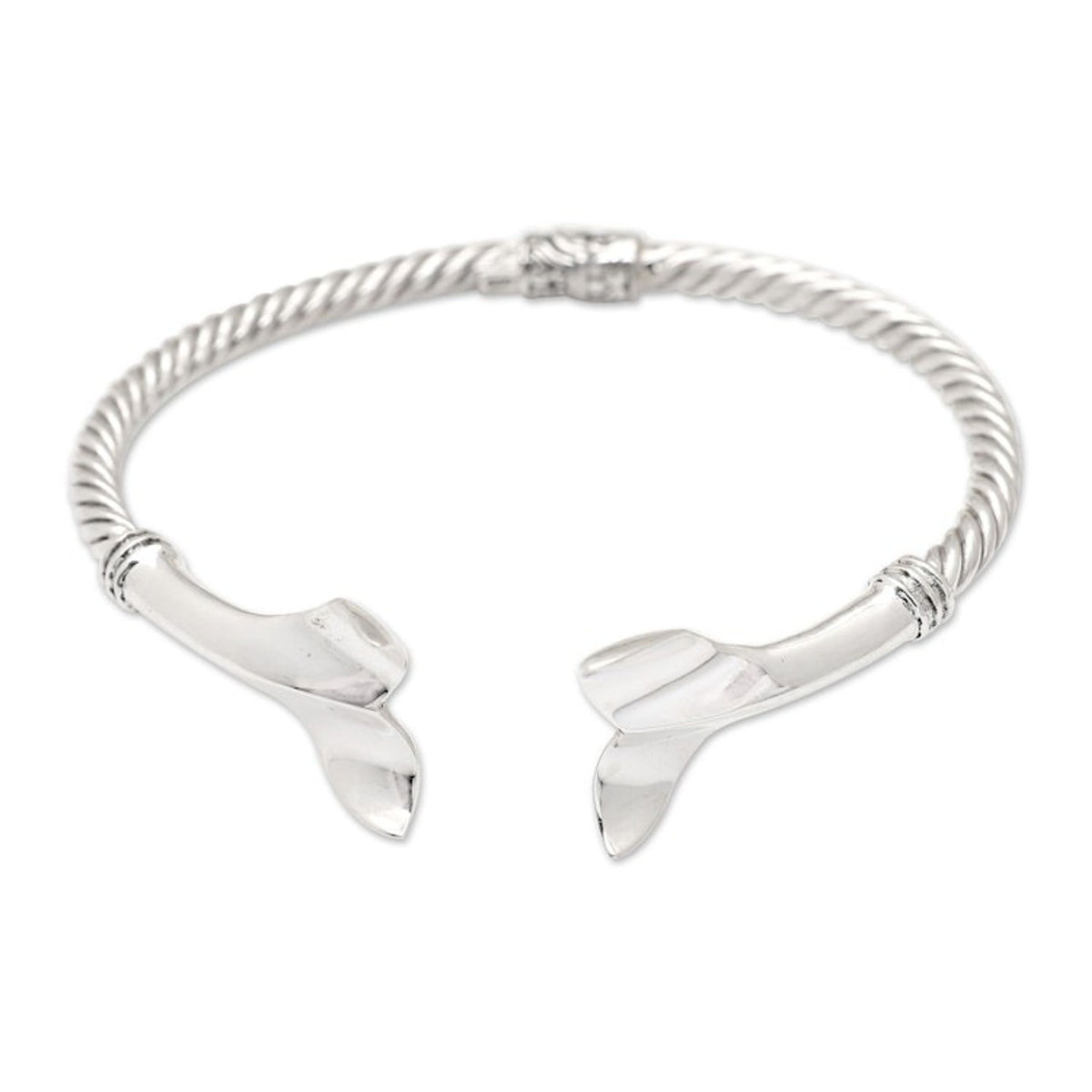 Shark-Themed Sterling Silver Cuff Bracelet from Bali 'Fierce Spirit'