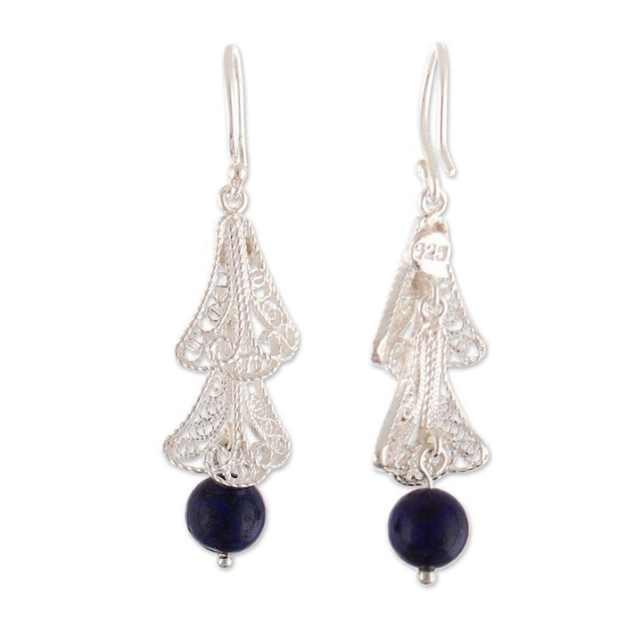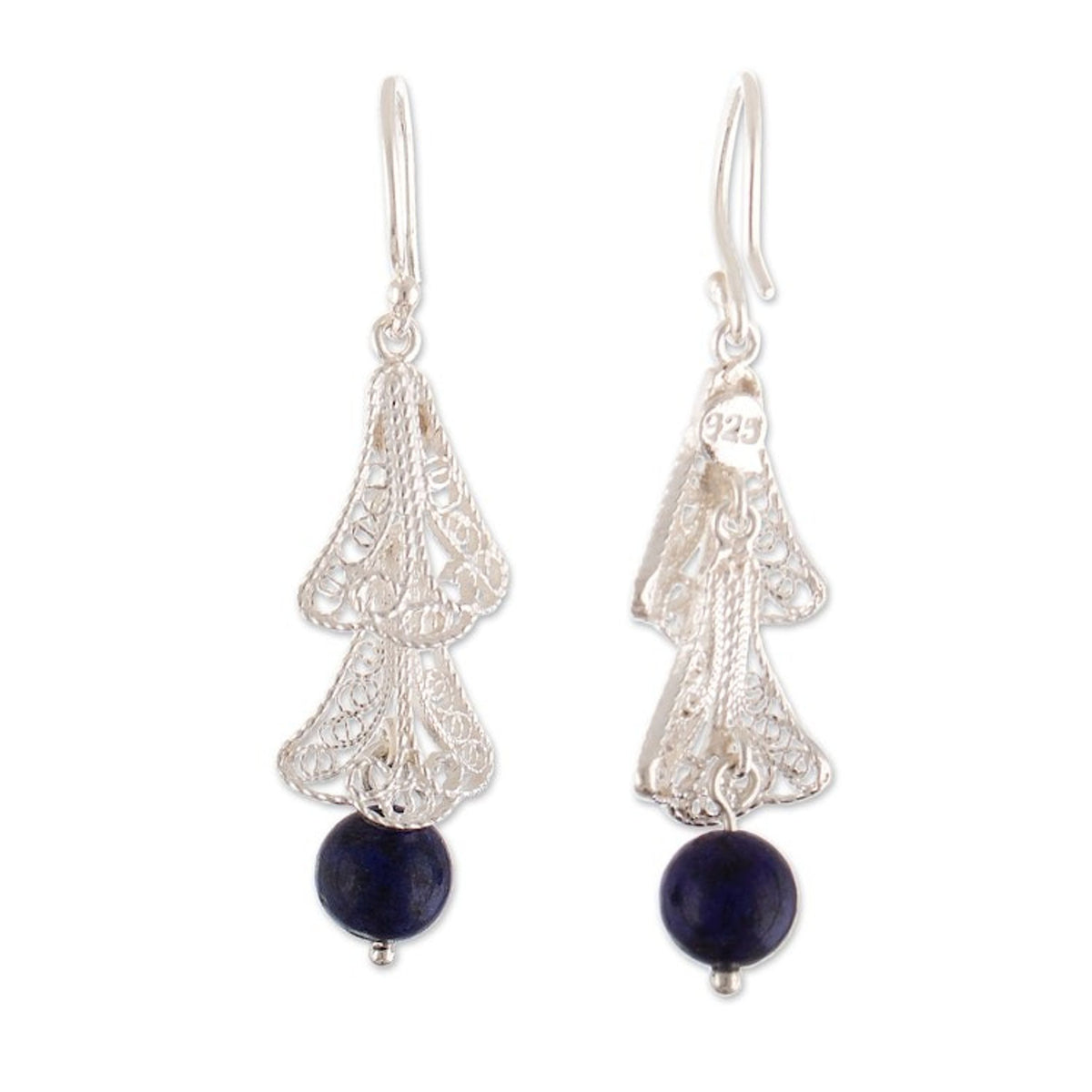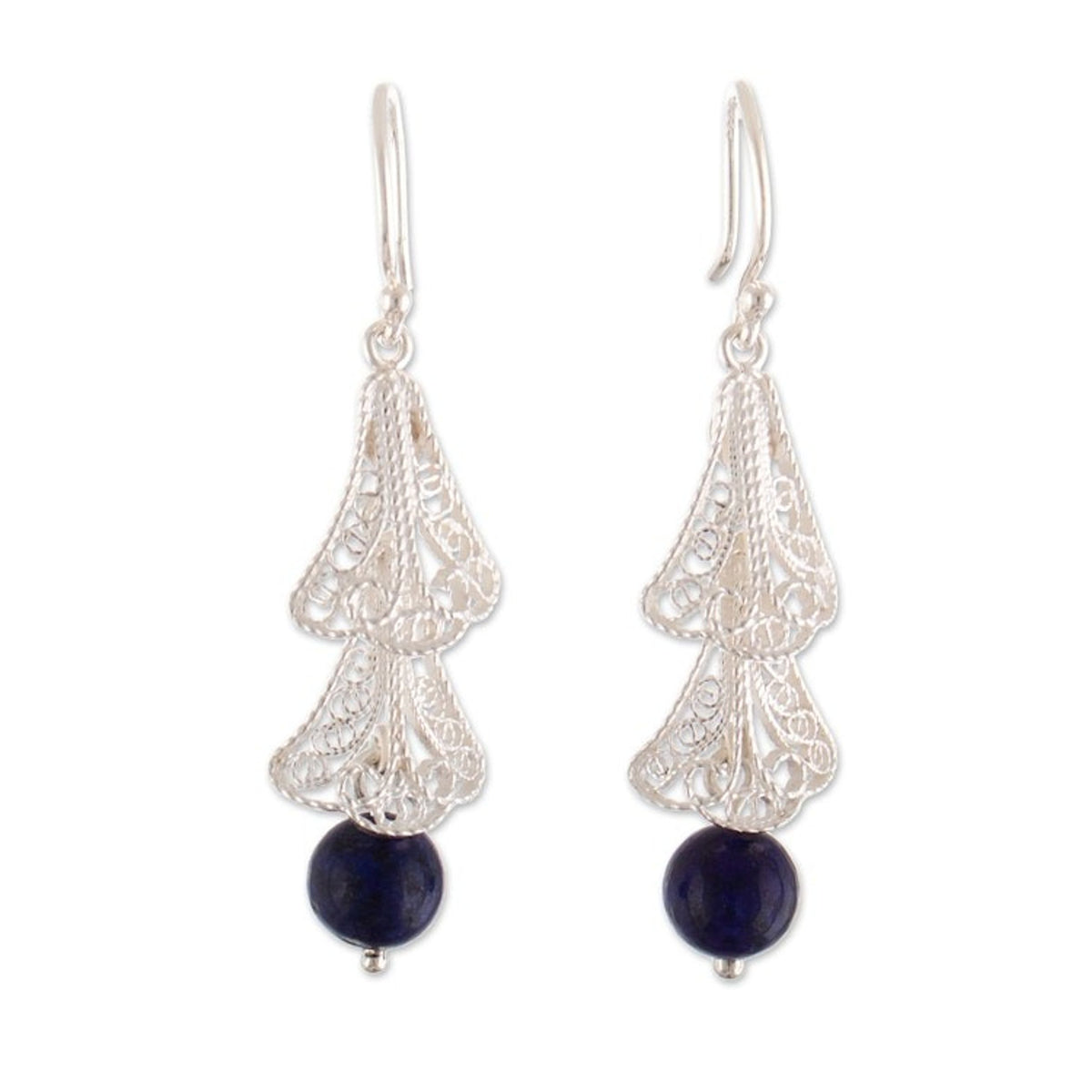 Silver Filigree Dangle Earrings with Lapis Lazuli Stone 'Bells are Ringing'