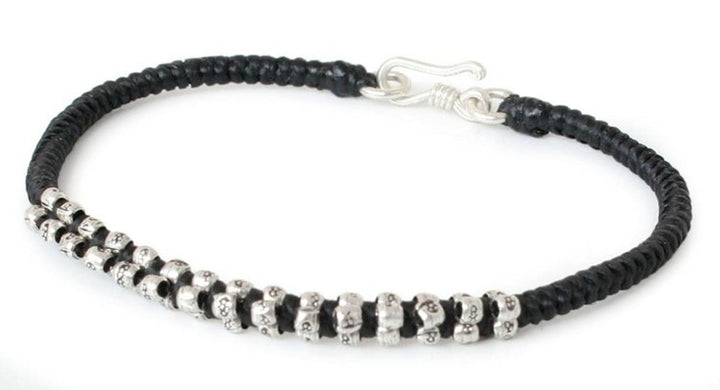 Handcrafted in Thailand, this bracelet is made from .950 silver and waxed polyester cord with an S-hook or hook clasp. The total weight is 0.13 oz. The bracelet measures 7.8 inches L x 0.2 inches W.