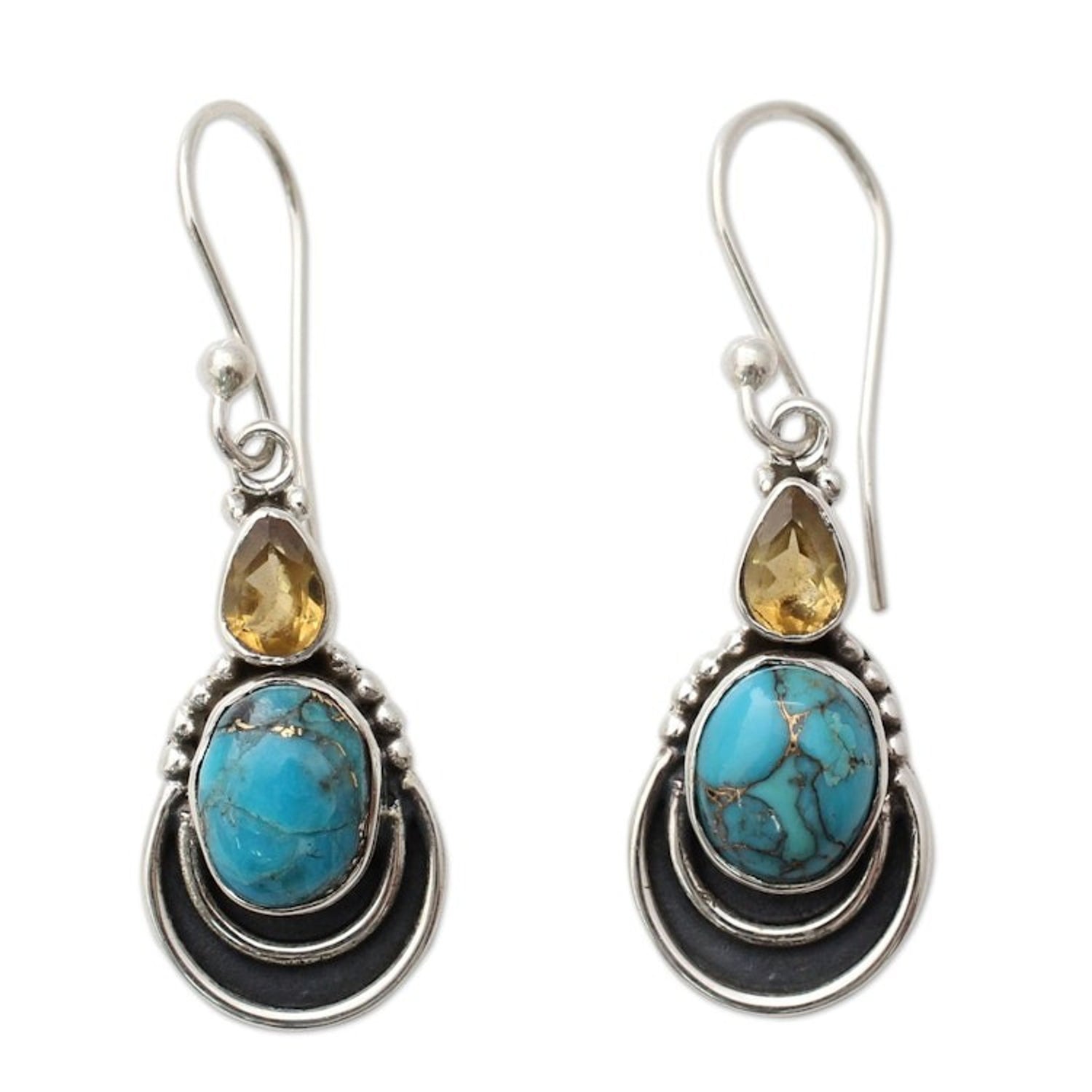 Silver Hook Earrings with Citrine and Composite Turquoise 'Eternal Allure'