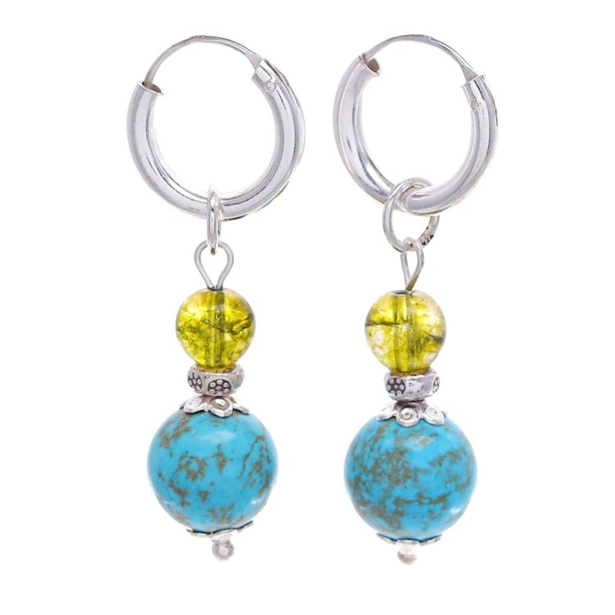 Silver Hoop Earrings with Reconstituted Turquoise Quartz 'Chic Duo'