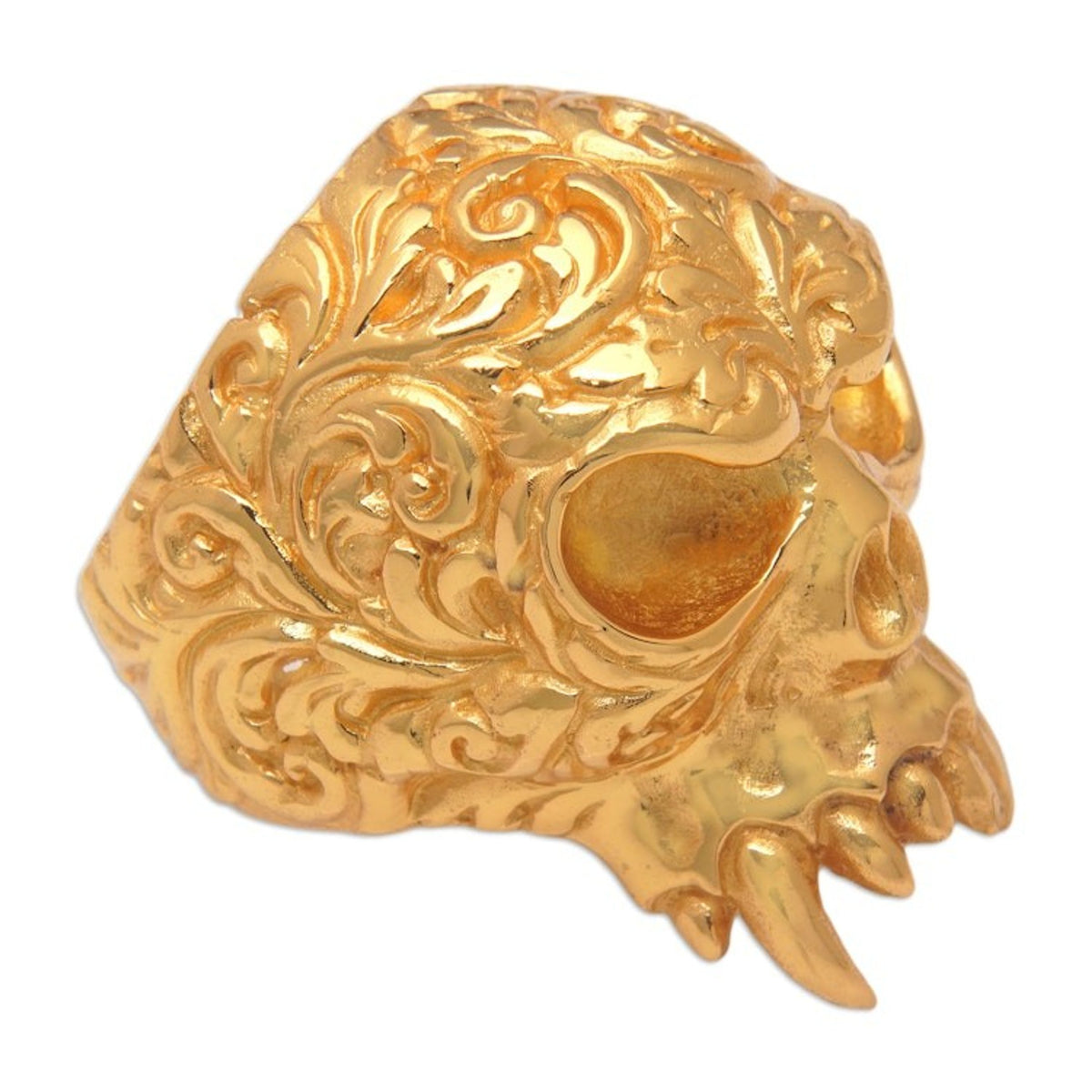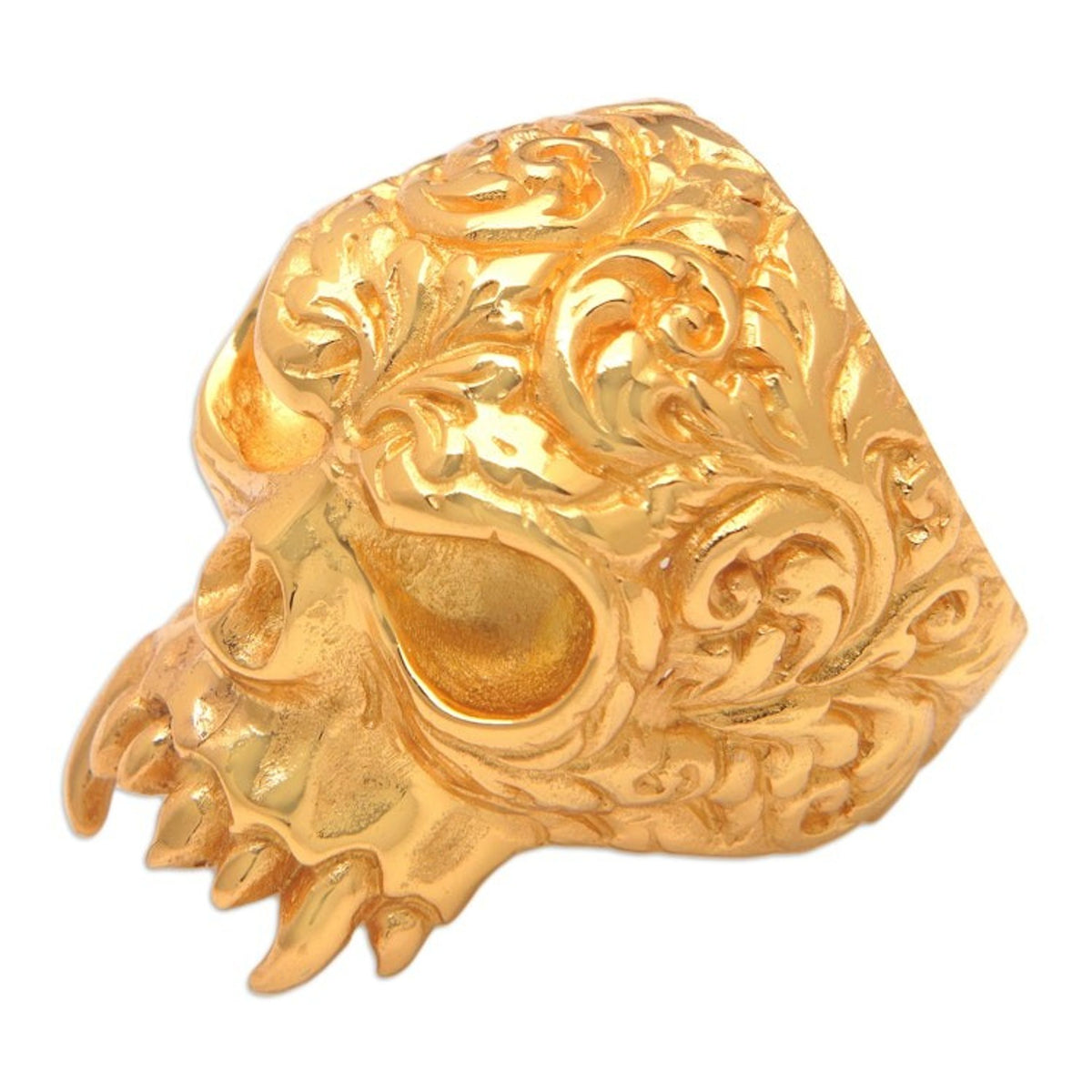 Skull-Shaped 22k Gold-Plated Cocktail Ring from Bali 'Trunyan Emissary'