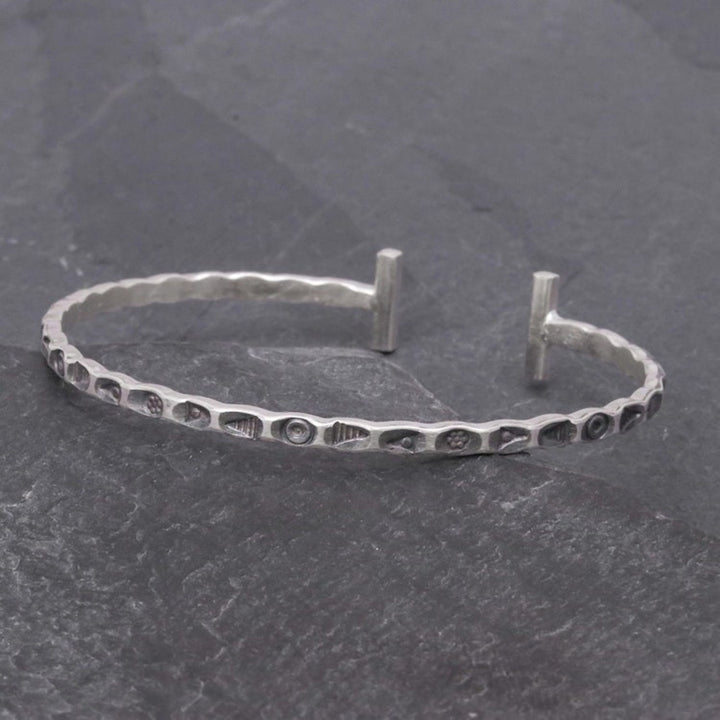 Slender Stamped Sterling Silver Cuff Bracelet 'Karen Flavor'