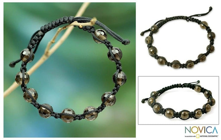 This 'Joyful Oneness' Smoky Quartz Shambhala-style Bracelet by Independent Artisans is inspired by Buddhist meditation practices, symbolizing tranquility, peace, and happiness. This bracelet represents the mystical energies of the smoky quartz, believed to promote joy in living. It is expertly tied by hand with macrame techniques, creating a meaningful and beautiful accessory that can be adjusted for a comfortable fit.