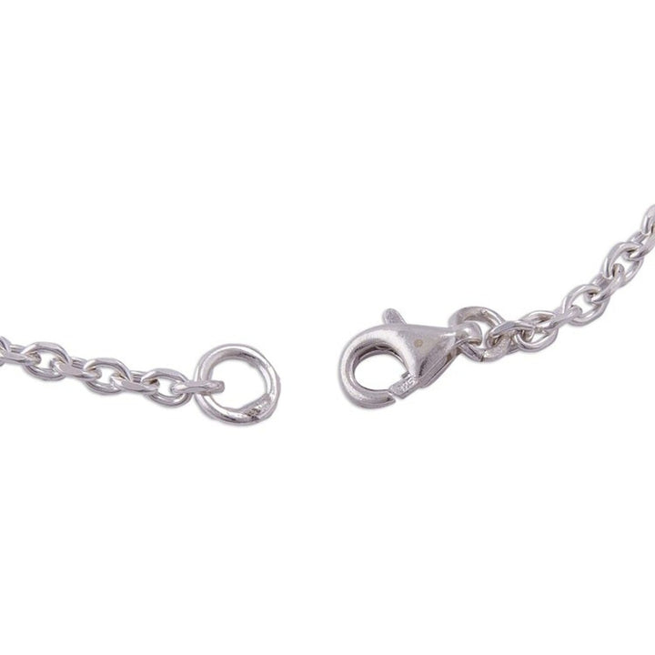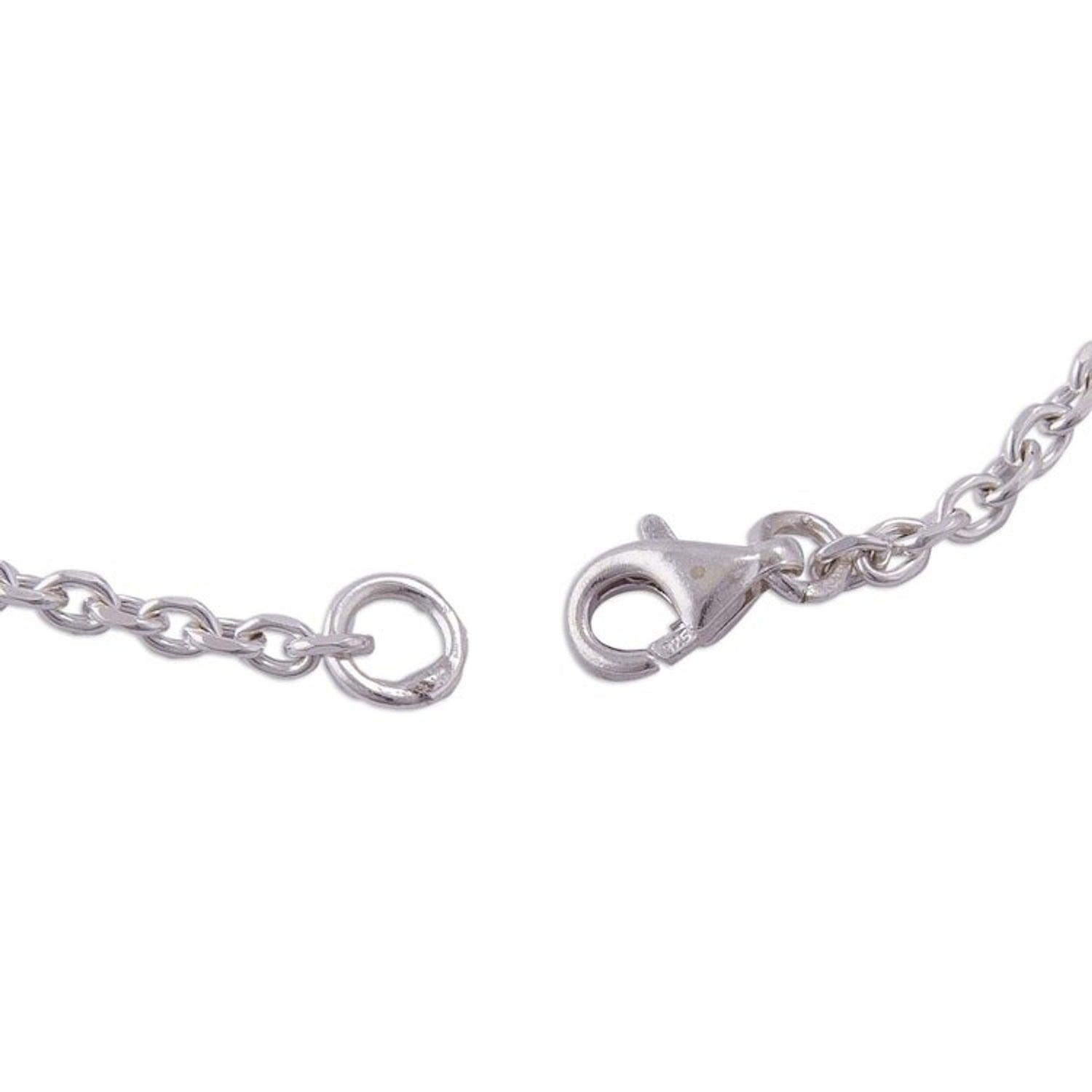 Handcrafted in Peru, this necklace is made from .925 sterling silver and sodalite. It features a cable chain with a combination finish and a lobster claw clasp. The total weight is 0.33 oz. The necklace is 17.3 inches L x 2 mm W, and the pendant measures 1.5 inches L x 1 inch W x 0.1 inches D.