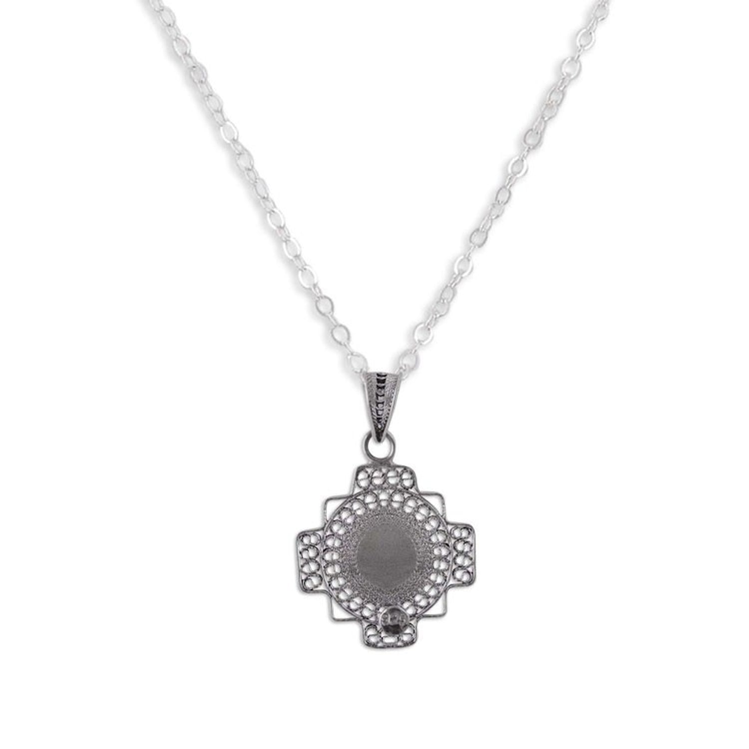 Sodalite Chakana Cross Filigree Pendant Necklace from Peru 'Blue Mountain Chakana'