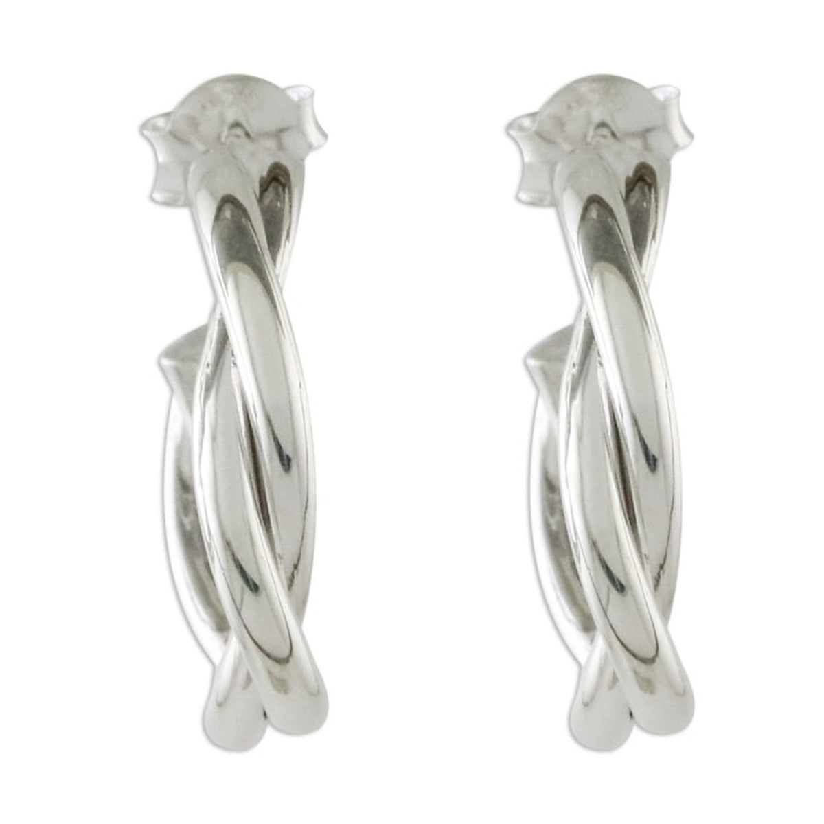 Spiral-Shaped Silver Half-Hoop Earrings from Thailand 'Spiral Curves'