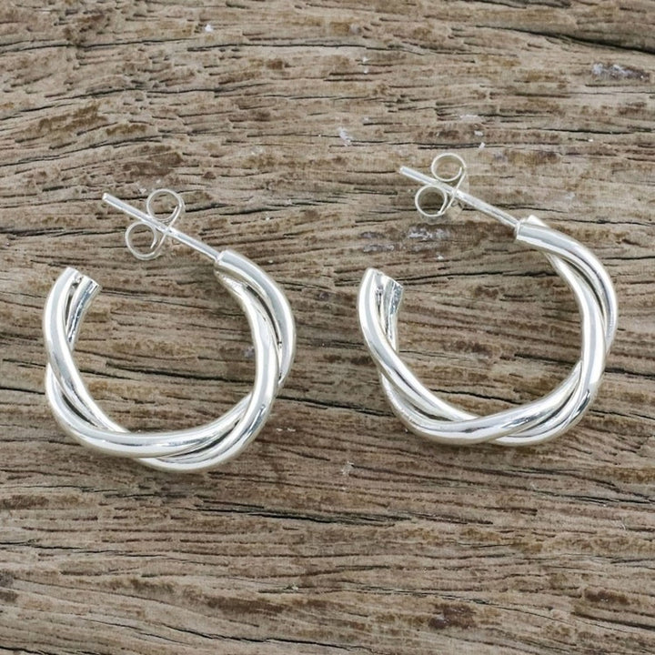 These 'Spiral Curves' Spiral-Shaped Silver Half-Hoop Earrings by Independent Artisans bring the skill of Thai artisans to your wardrobe. Each half-hoop earring is crafted of sterling silver to feature a twisting shape that glimmers in the light. The high polish finish and simple, elegant design make these a versatile accessory for everyday wear.