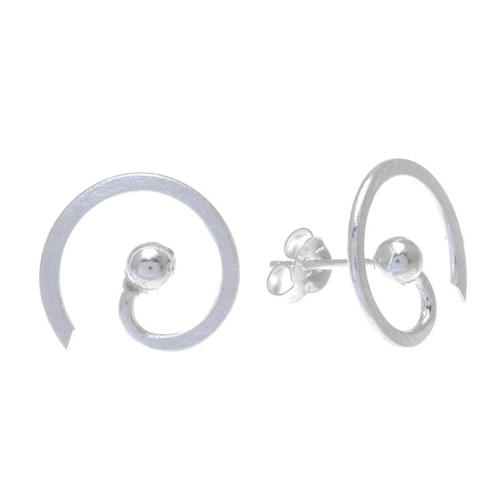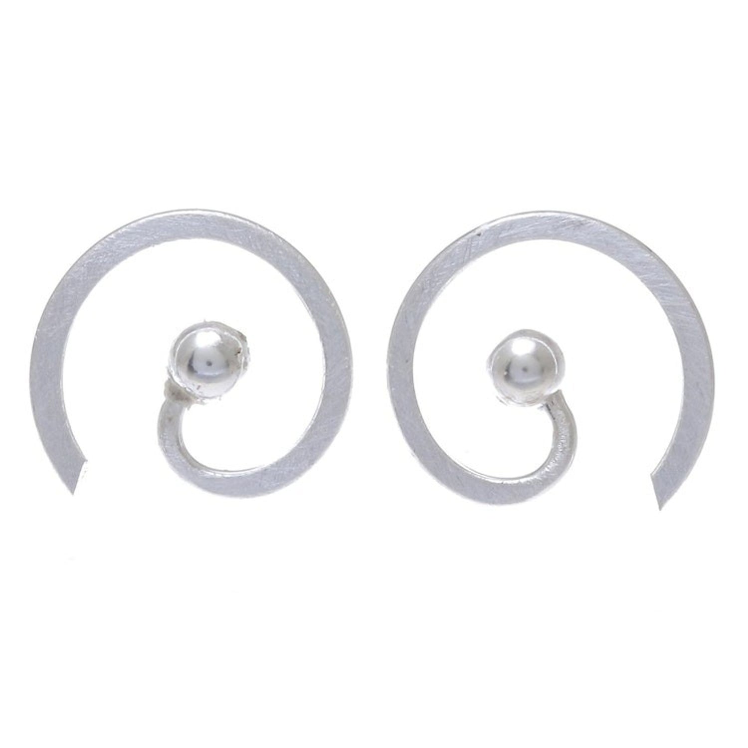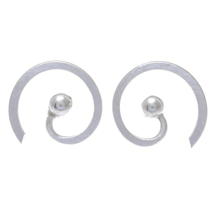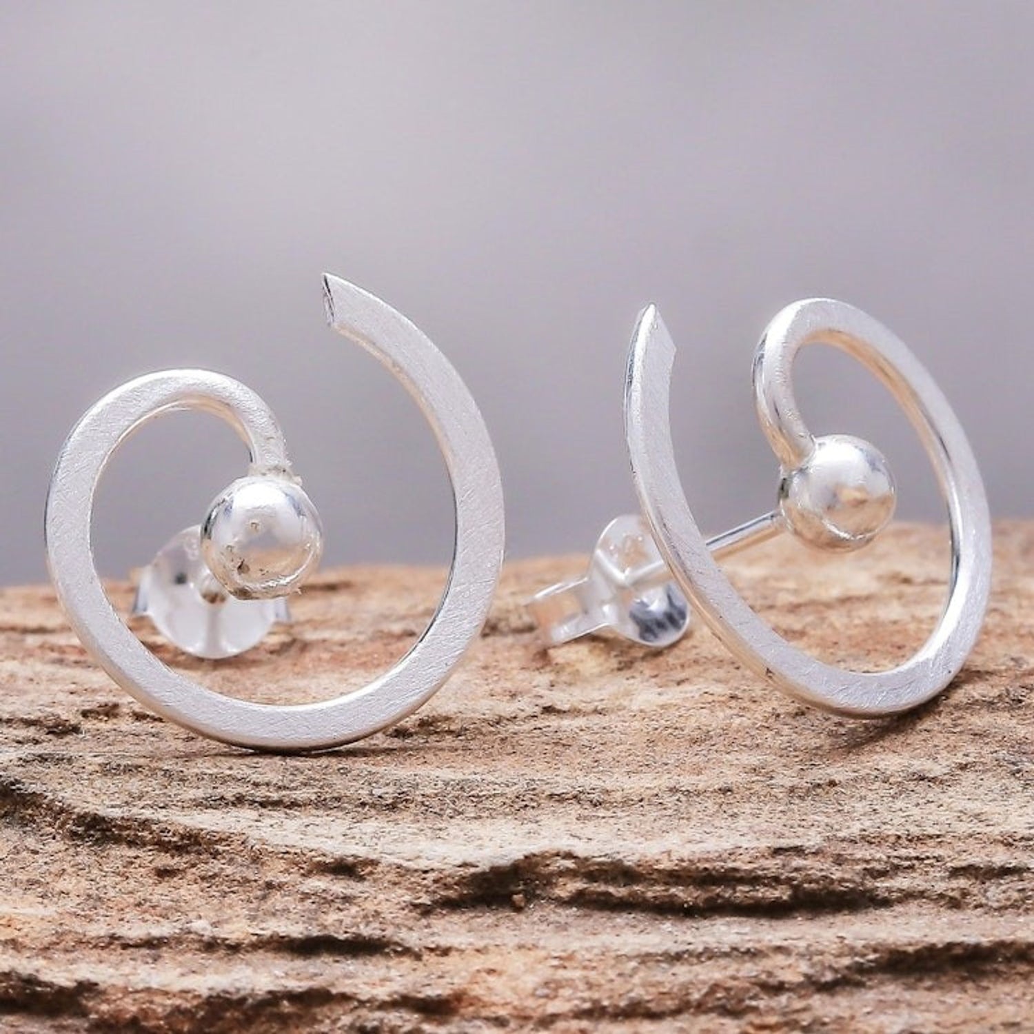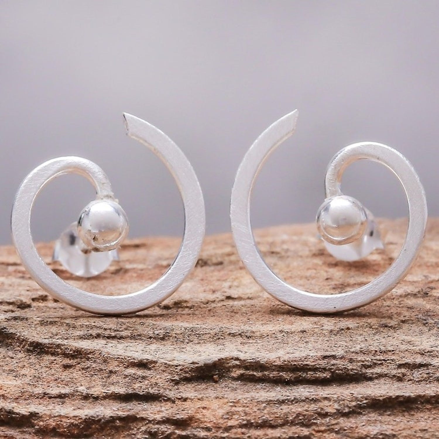 These 'Creative Energy' Spiral-Shaped Sterling Silver Button Earrings by Independent Artisans are a graceful pair of button earrings. Handcrafted from sterling silver, two spirals elegantly grace the ears. The combination of finishes, including a brushed-satin texture, adds a touch of sophistication and unique charm. These versatile and lightweight earrings are perfect for daily wear.