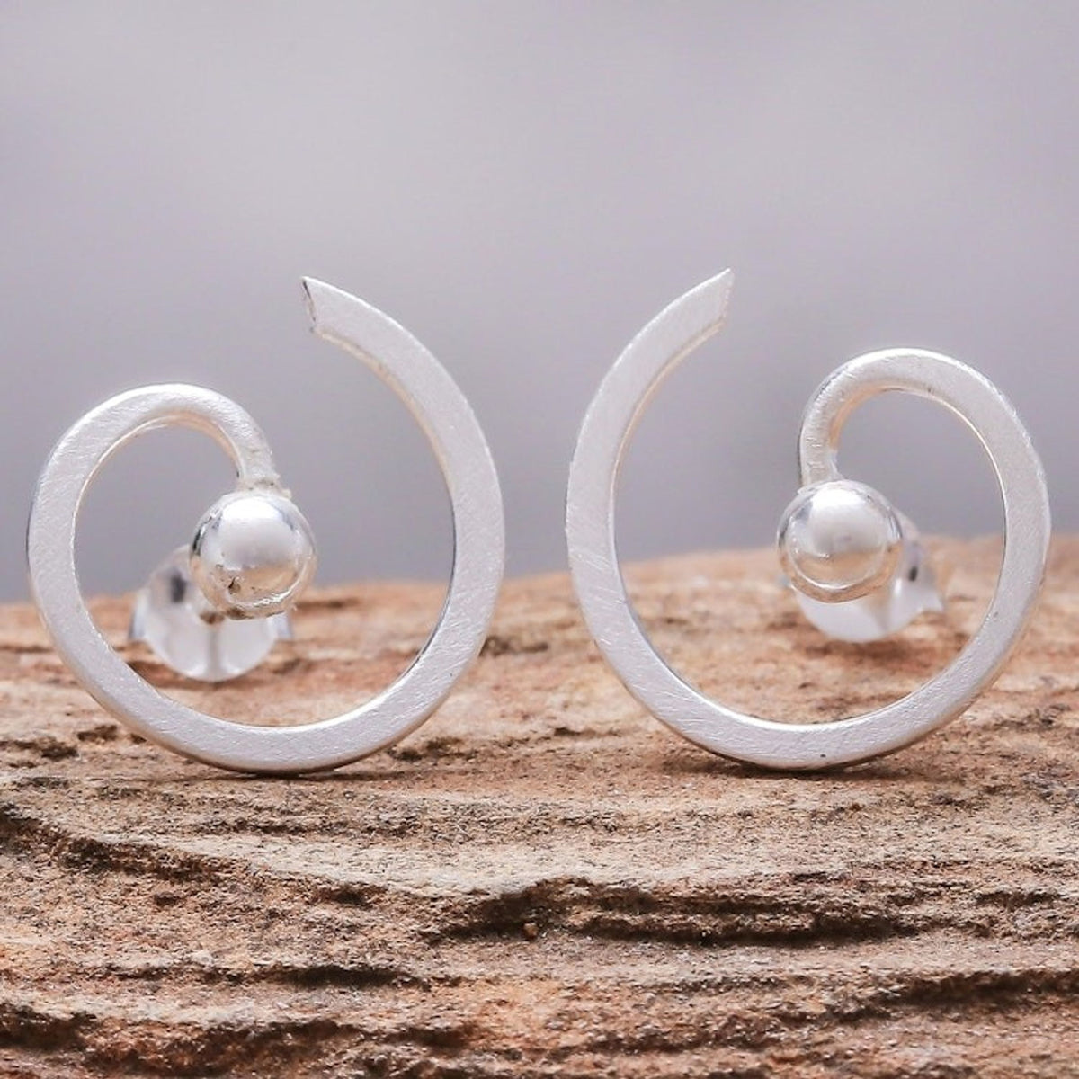 Spiral-Shaped Sterling Silver Button Earrings from Thailand 'Creative Energy'