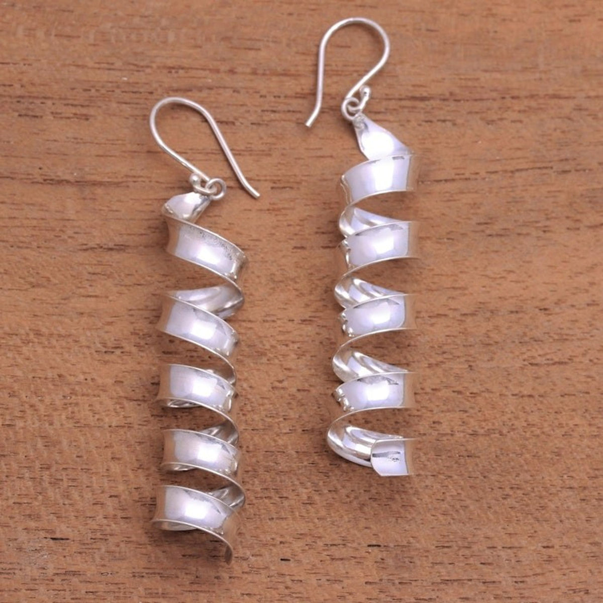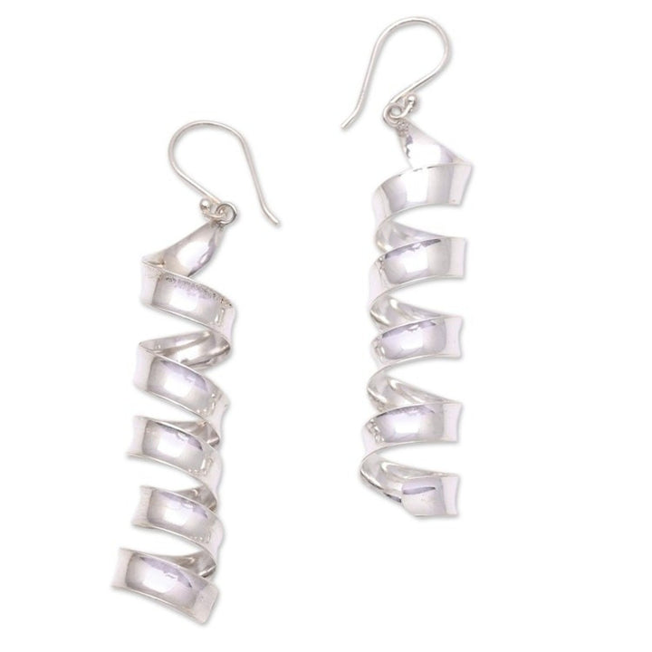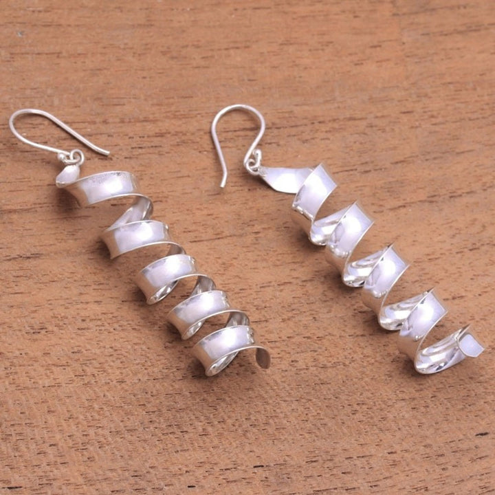 Spiral-Shaped Sterling Silver Dangle Earrings from Bali 'Spiral Shine'