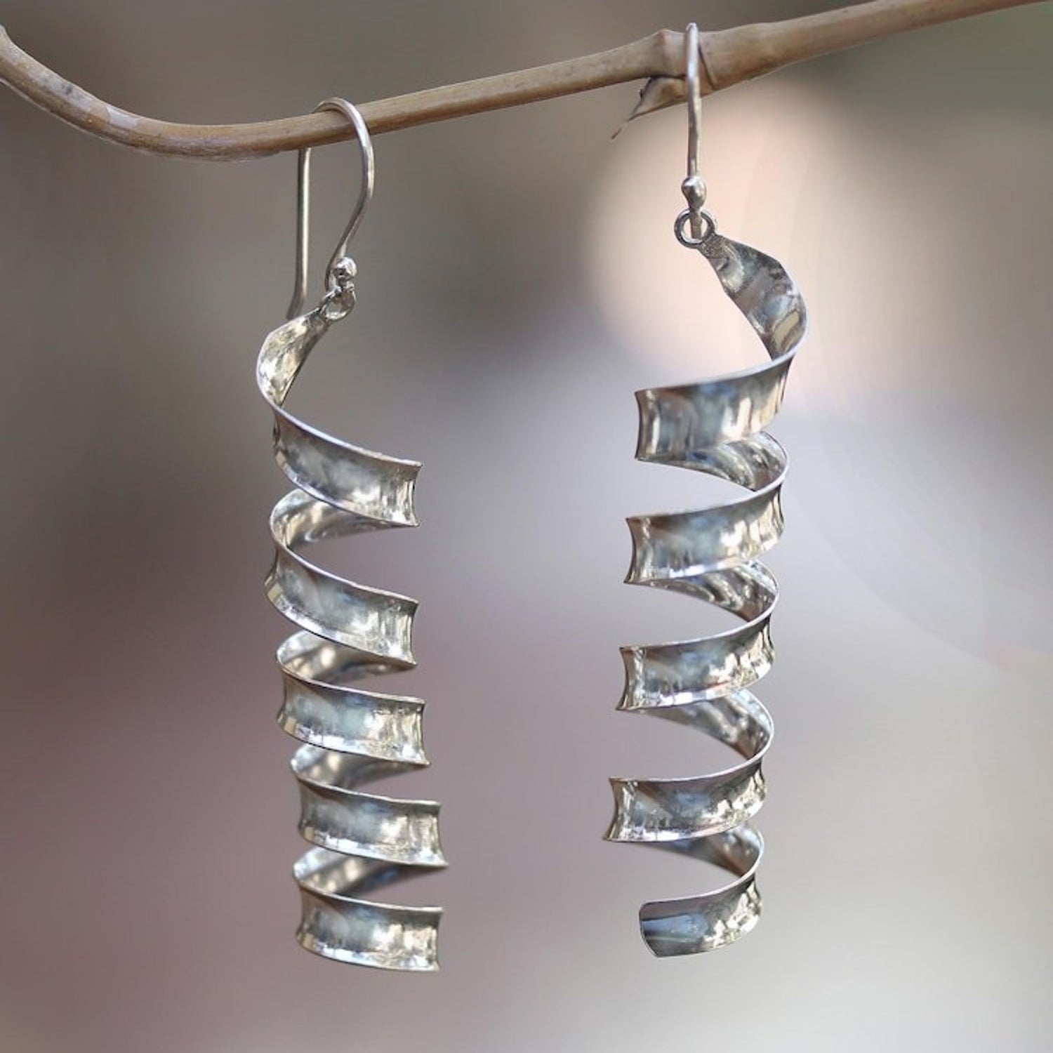 These 'Spiral Shine' Spiral-Shaped Sterling Silver Dangle Earrings by Independent Artisans are a flirty pair of dangle earrings. Handcrafted from sterling silver, two shiny spirals bounce playfully, capturing and reflecting the light. The high polish finish enhances their sleek and modern design, making them a fun and stylish accessory.