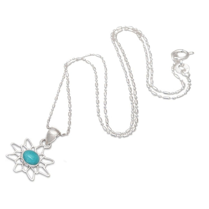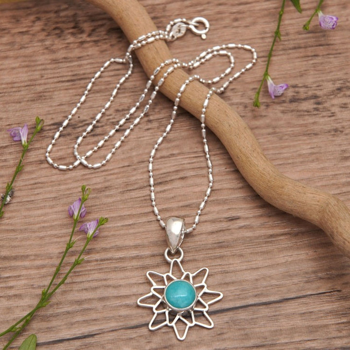 Sterling Silver Amazonite Chakra Flower Pendant Necklace 'Chakra Splendor'