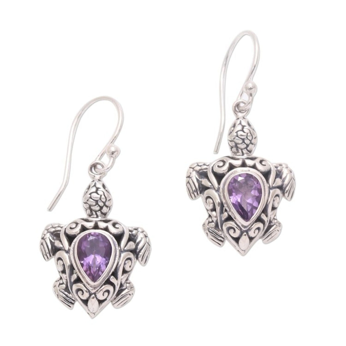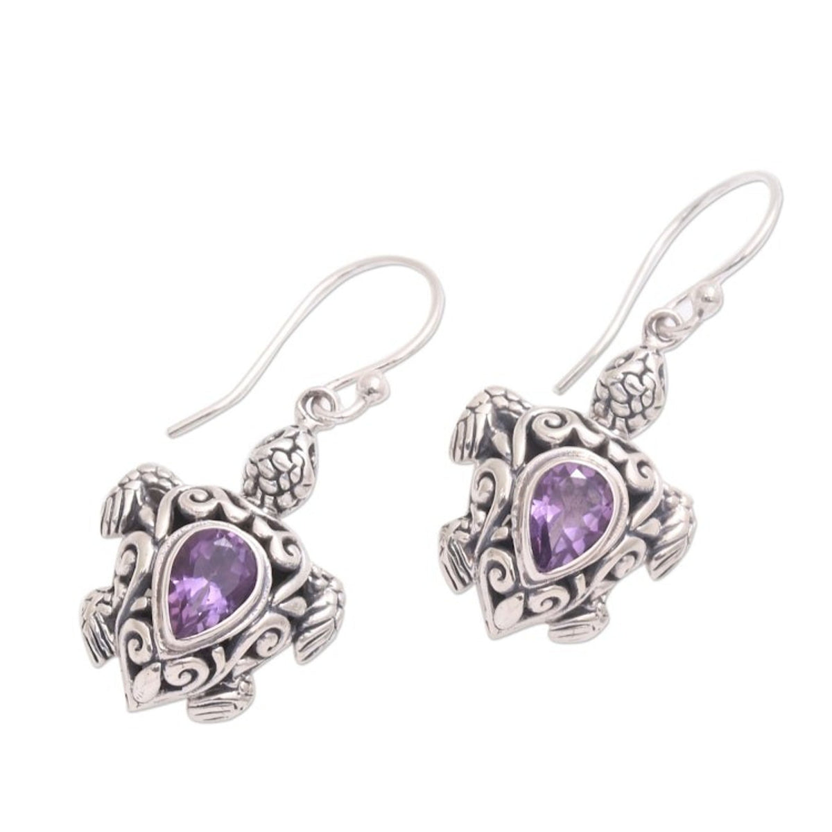 Sterling Silver Amethyst Openwork Sea Turtle Dangle Earrings 'Penyu Paradise'