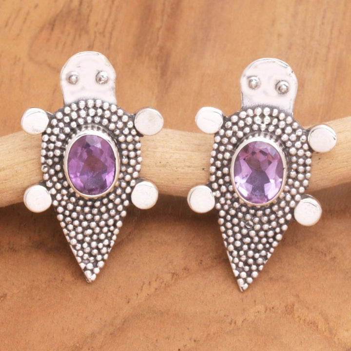 Sterling Silver Amethyst Tortoise Button Earrings 'Heaven's Purple Tortoise'