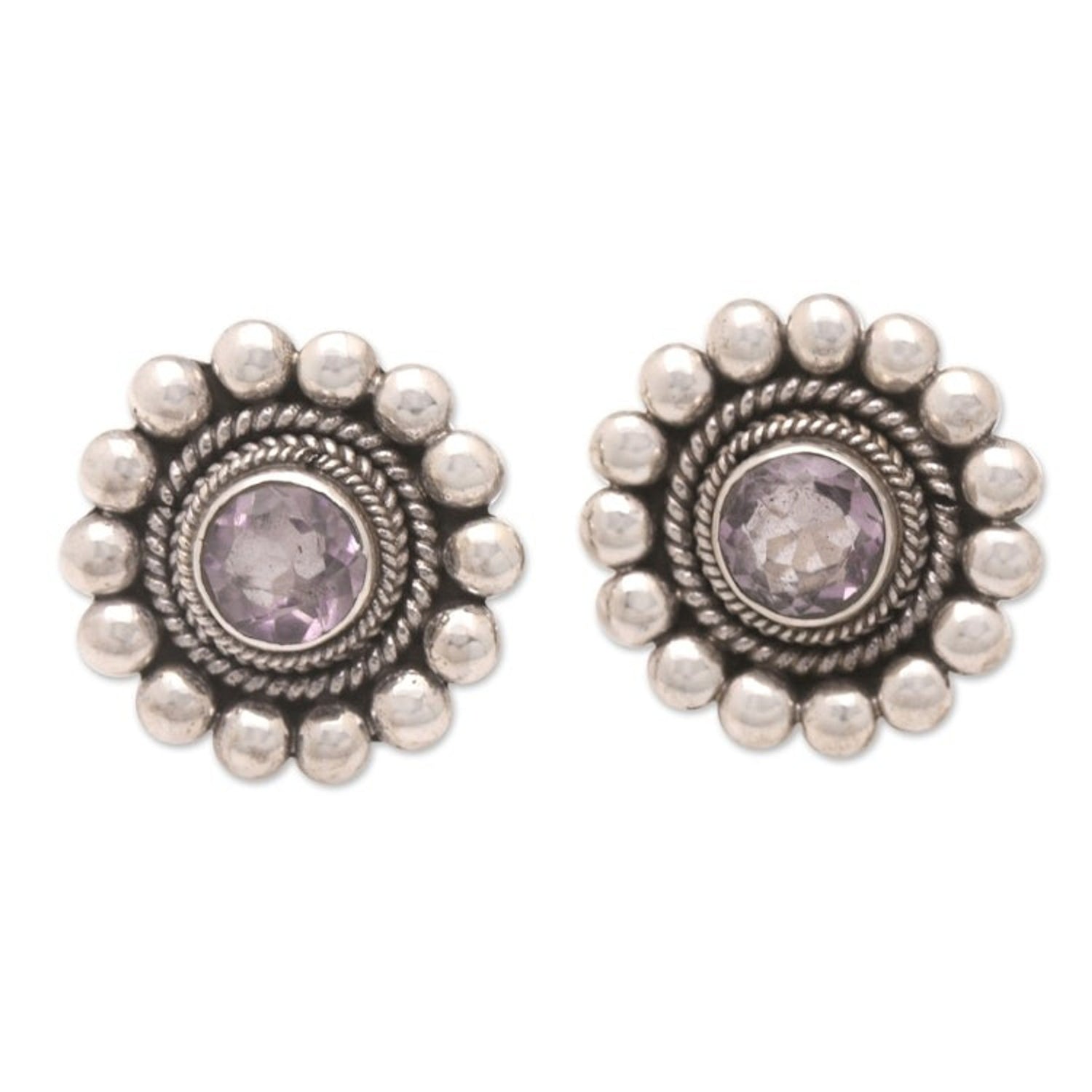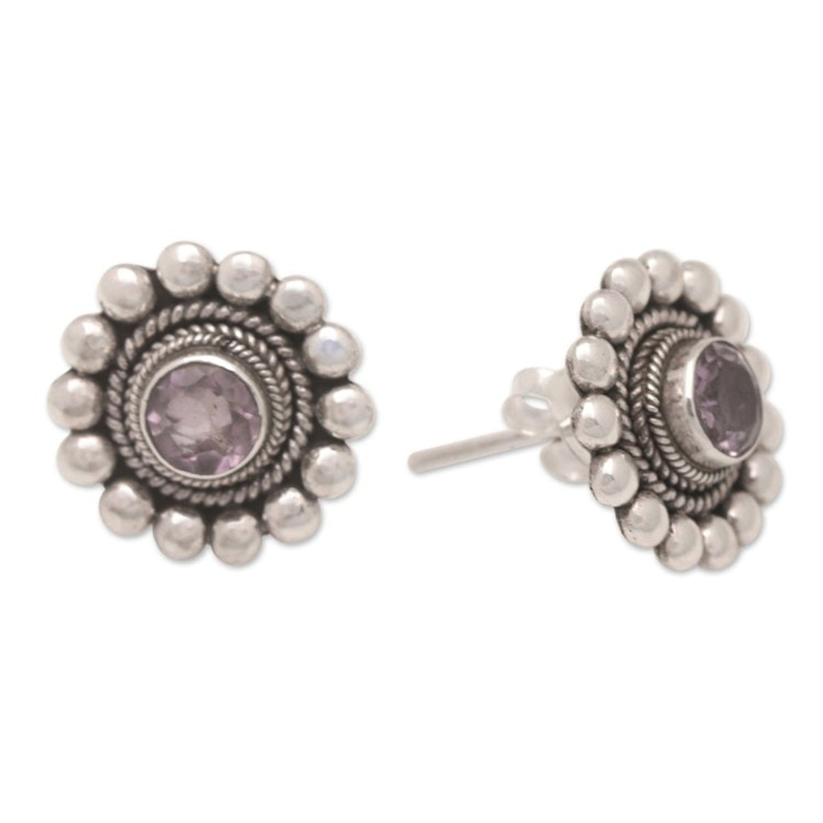 Handcrafted in Indonesia, these post earrings are made from .925 sterling silver and amethyst with a combination finish. The total weight is 0.11 oz. Each earring measures 0.6 inches L x 0.6 inches W x 0.2 inches D.