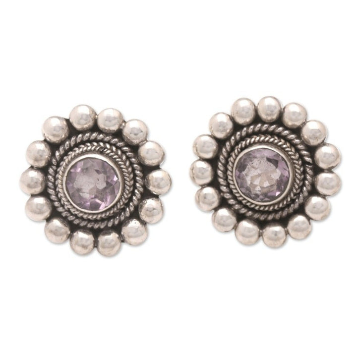 Sterling Silver and Amethyst Floral Drop Earrings from Bali 'Heavenly Flower in Purple'