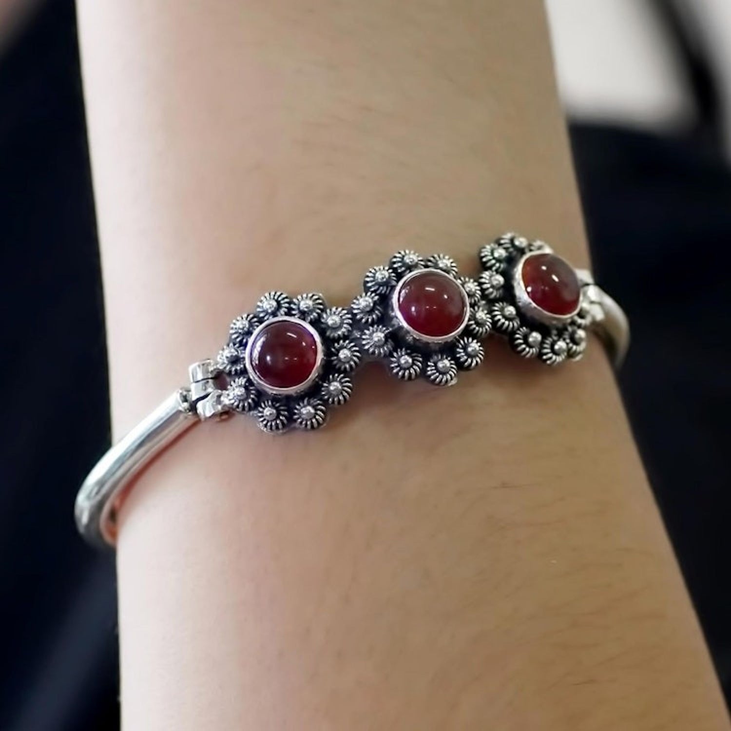 Sterling Silver and Carnelian Bangle Bracelet 'Secret Lotus'