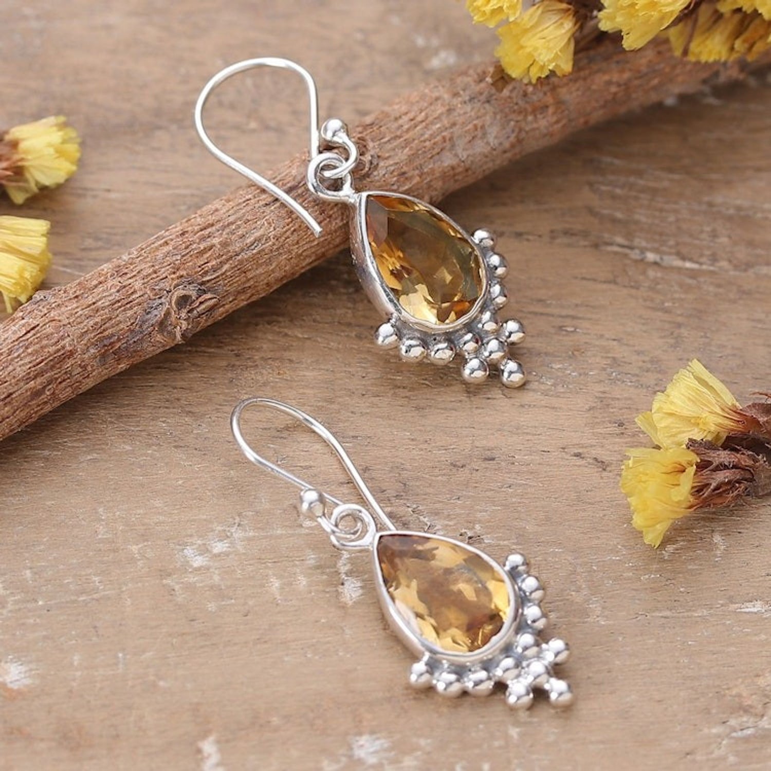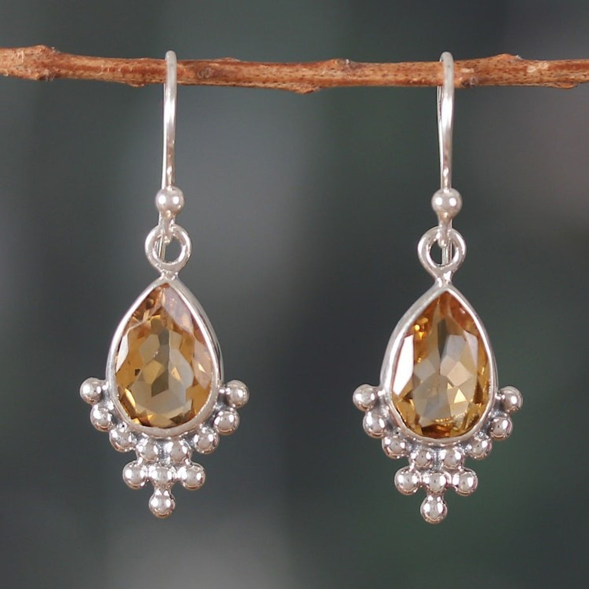 Sterling Silver and Citrine Dangle Earrings Made in India 'Sublime Dream'