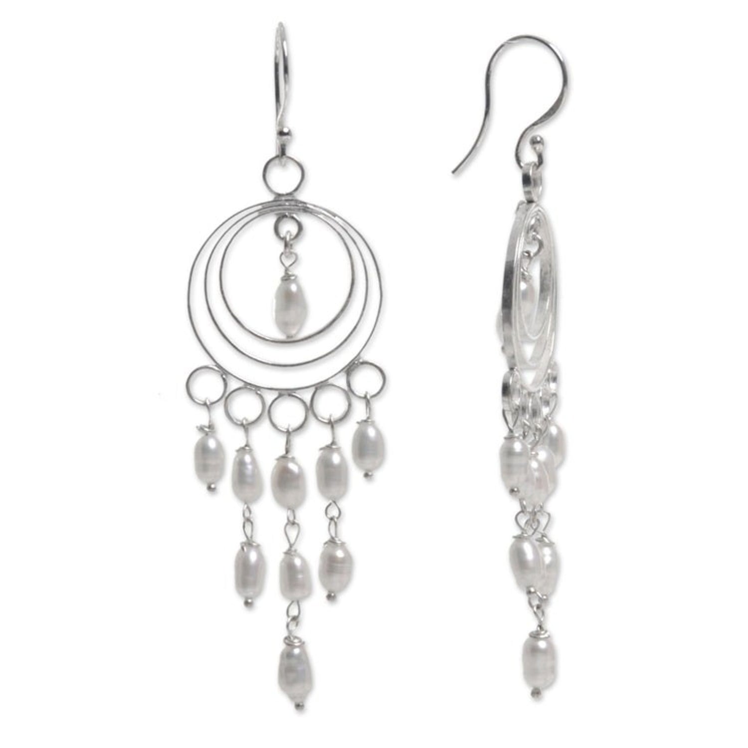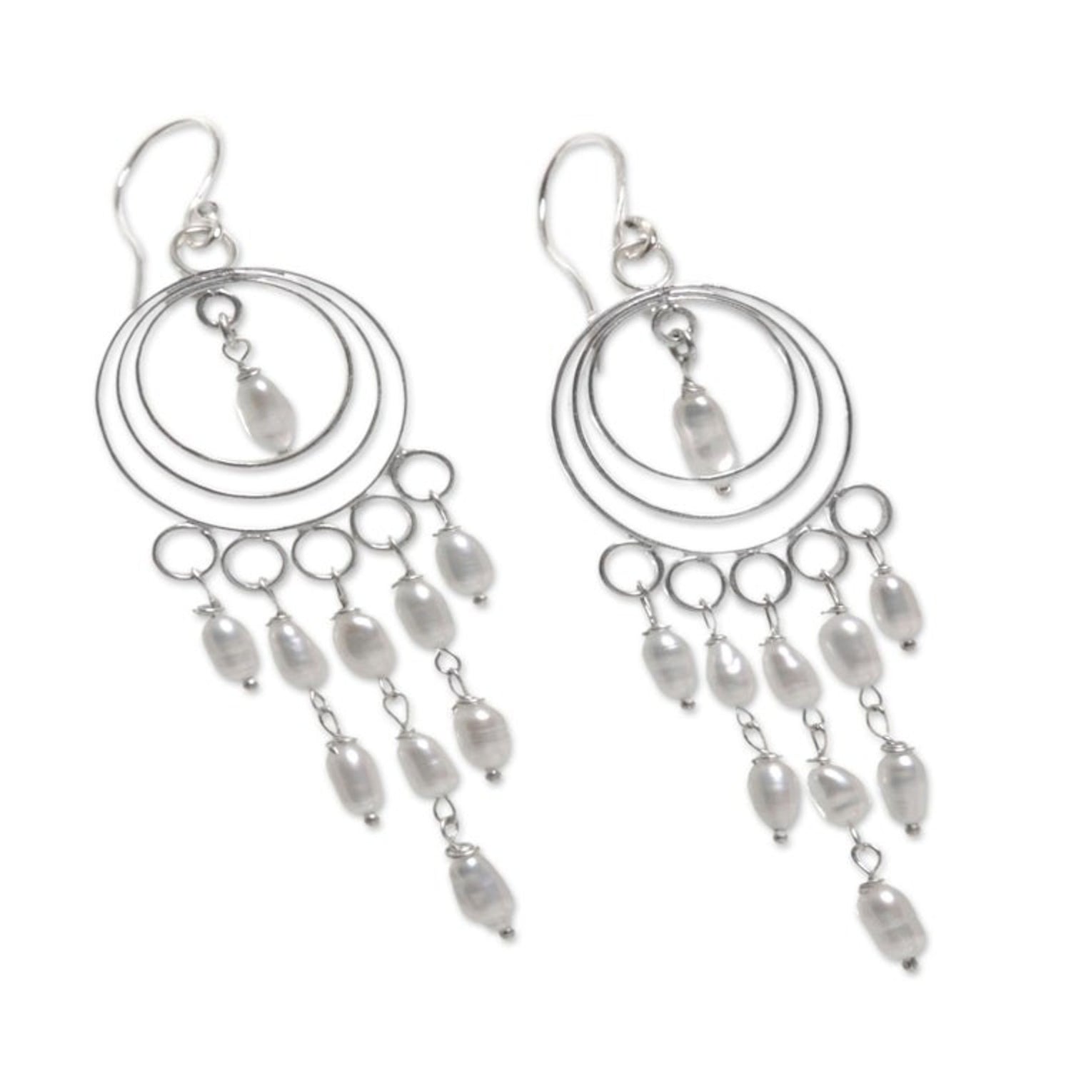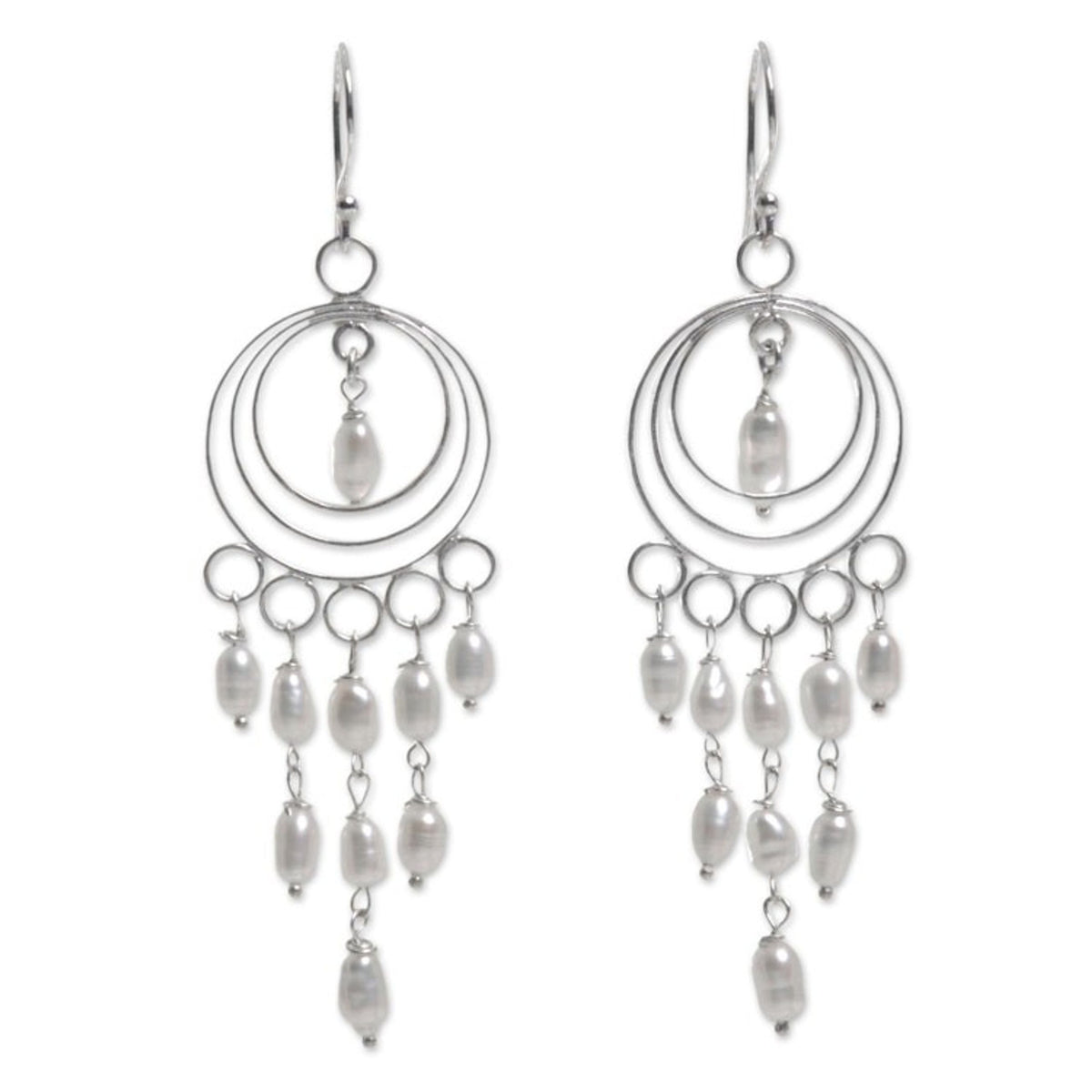 Sterling Silver and Cultured Pearl Chandelier Earrings 'Moonlit Circles'